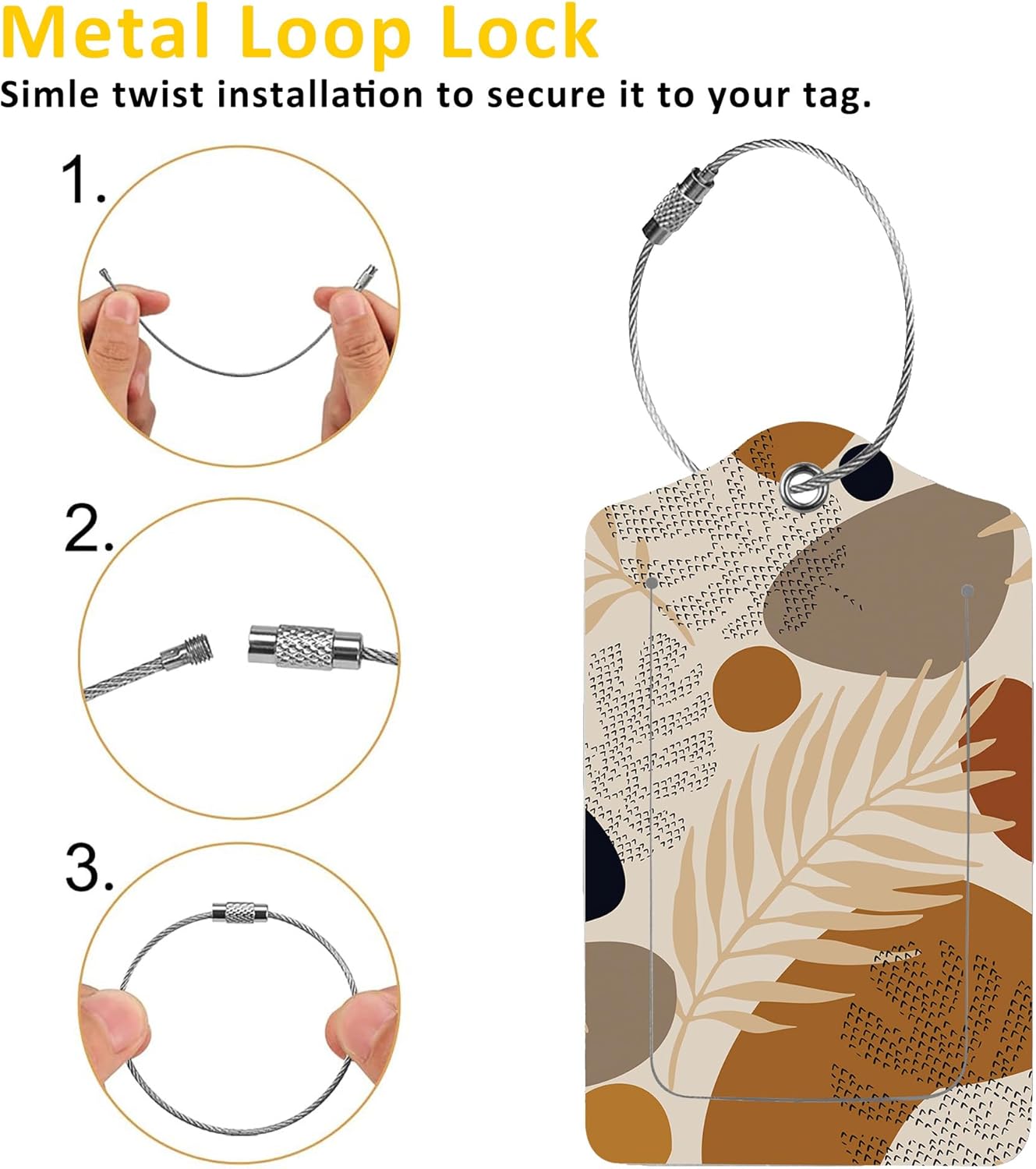 2 Pack Abstract Tropical Leaves Luggage Tags for Suitcases,Modern Boho Leather Baggage Suitcases Tag Name ID Label Privacy Cover Travel Bag Tags for Women Men Boys Girls