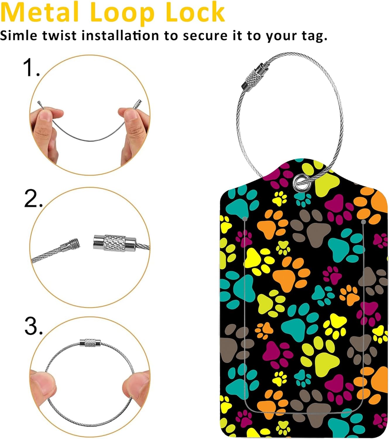 2 Pack Paw Pattern Luggage Tags for Suitcases,Paw Print Leather Baggage Suitcases Tag Name ID Label Privacy Cover Travel Bag Tags for Women Men Boys Girls