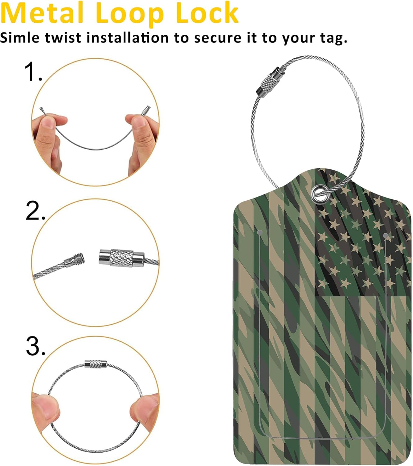 2 Pack American Flag Luggage Tags for Suitcases,USA Flag Leather Baggage Suitcases Tag Name ID Label Privacy Cover Travel Bag Tags for Women Men Boys Girls