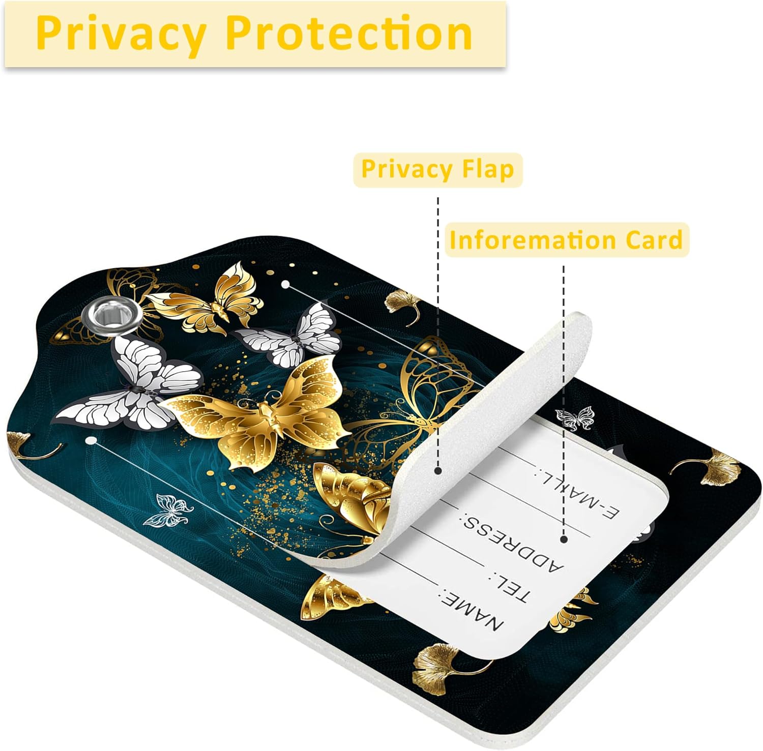 2 Pack Butterflies Luggage Tags for Suitcases,Butterflies in Flight Leather Baggage Suitcases Tag Name ID Label Privacy Cover Travel Bag Tags for Women Men Boys Girls