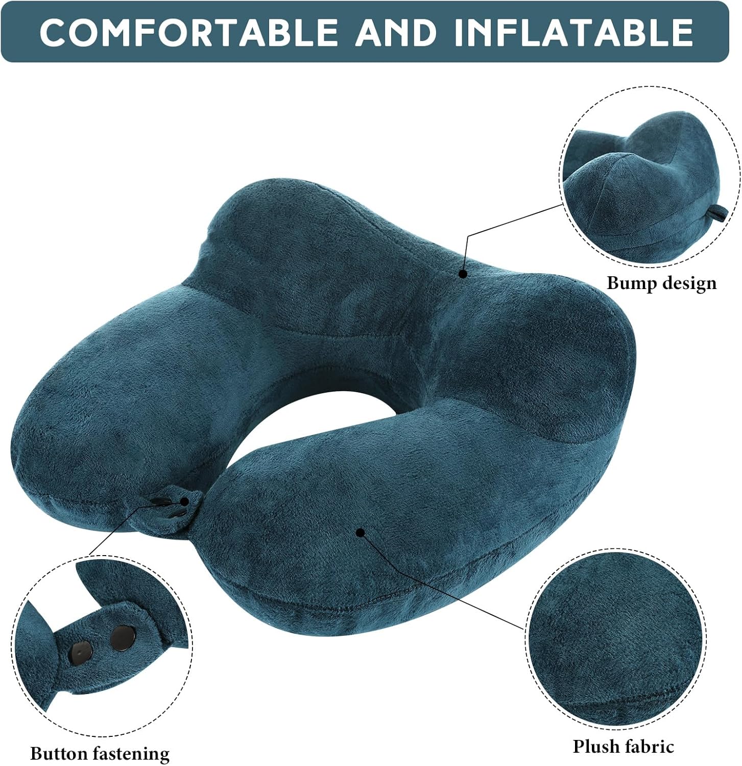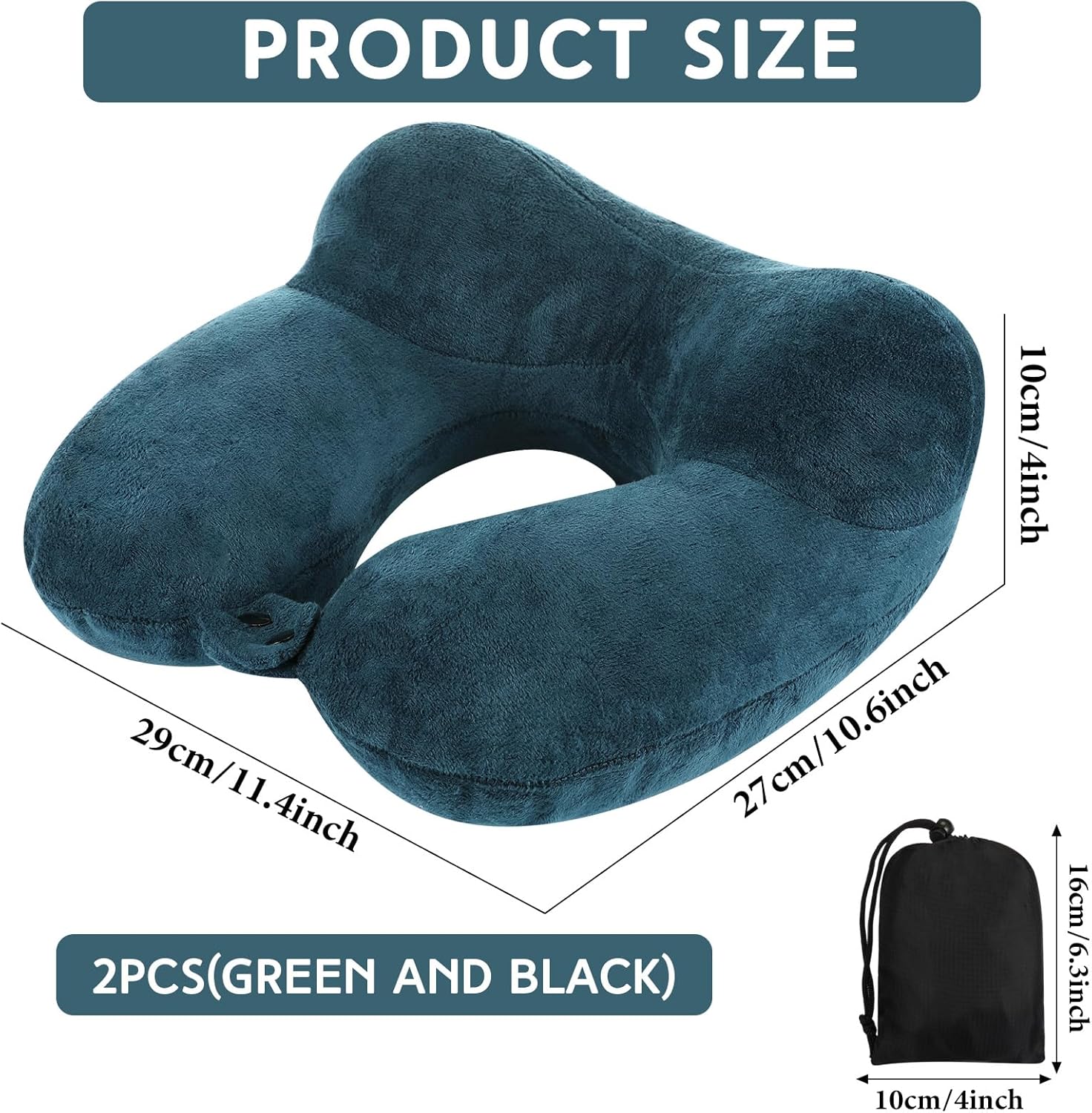 Sintuff 2 Pack Inflatable Travel Pillow for Airplanes Inflatable Neck Flight Pillows with Compact Bag and Blindfold for Traveling, Airplane, Train, Car, Office(Peacock Green and Black)