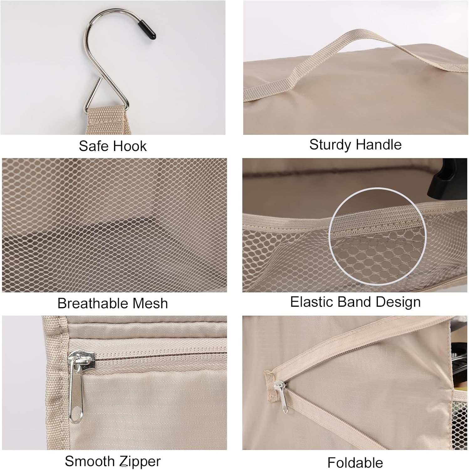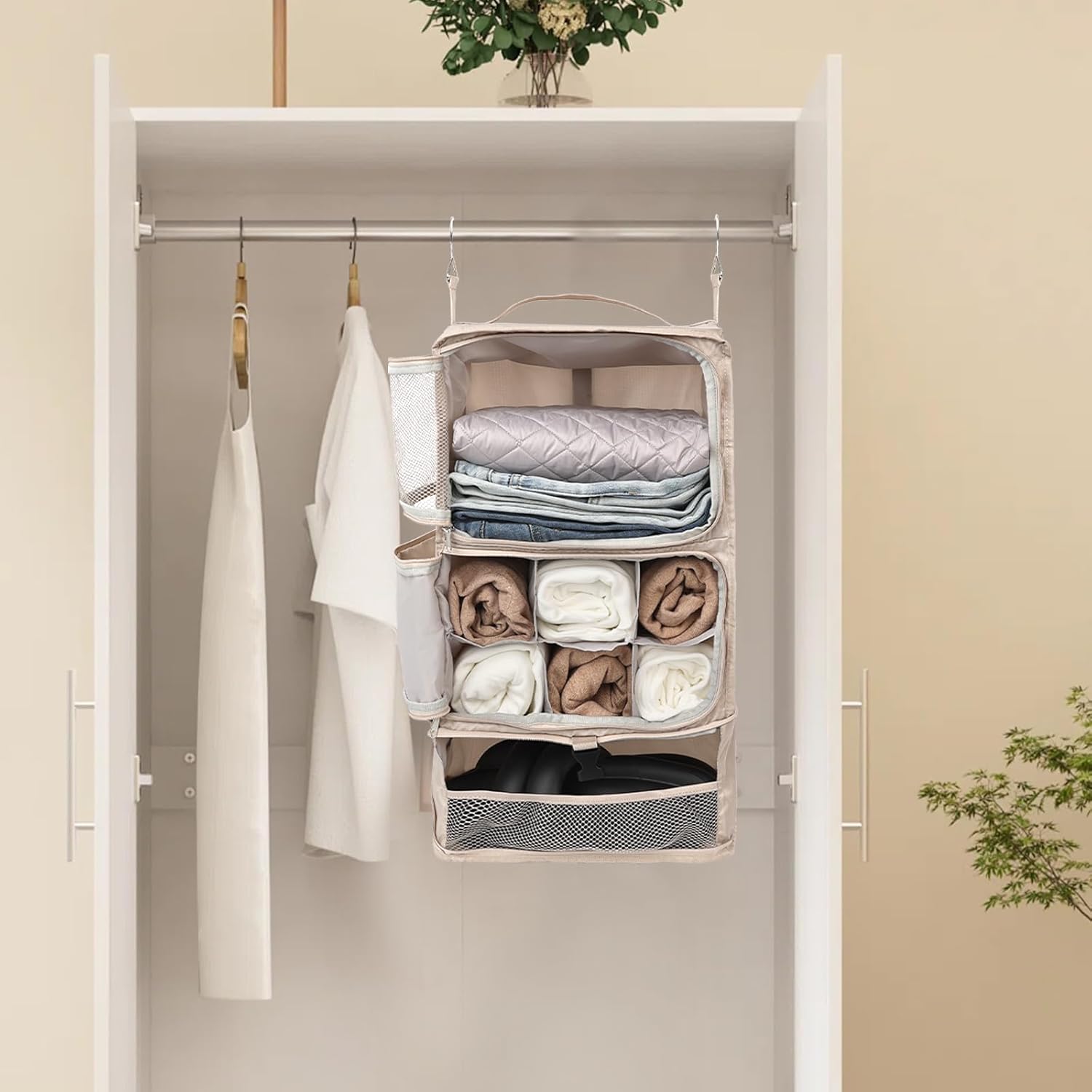 TABITORA Travel Portable Hanging Shelves Closet Organizer Packing Luggage Organizer and Storage with Multifunctional and Foldable Invisible Compartment,Lightweight, for Suitcase, RV,Closet…Beige,XL