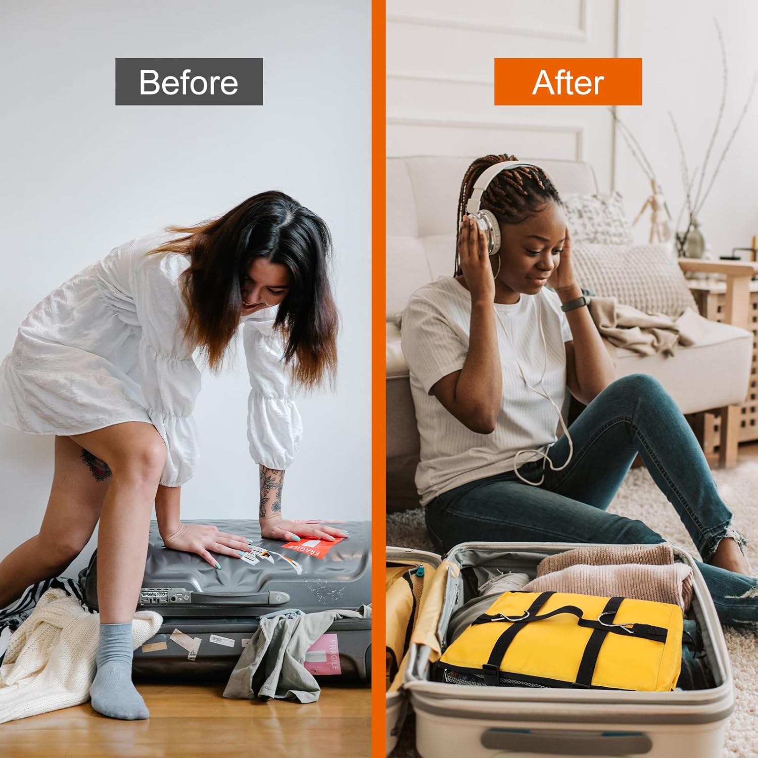 TABITORA Travel Portable Hanging Shelves Closet Organizer Packing Luggage Storage with Multifunctional and Foldable Invisible Compartment,Lightweight, for Suitcase, RV,Closet…Yellow,XXL