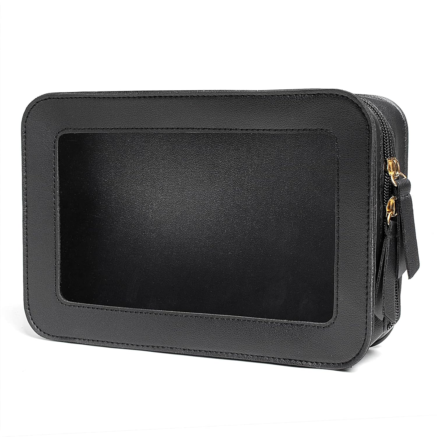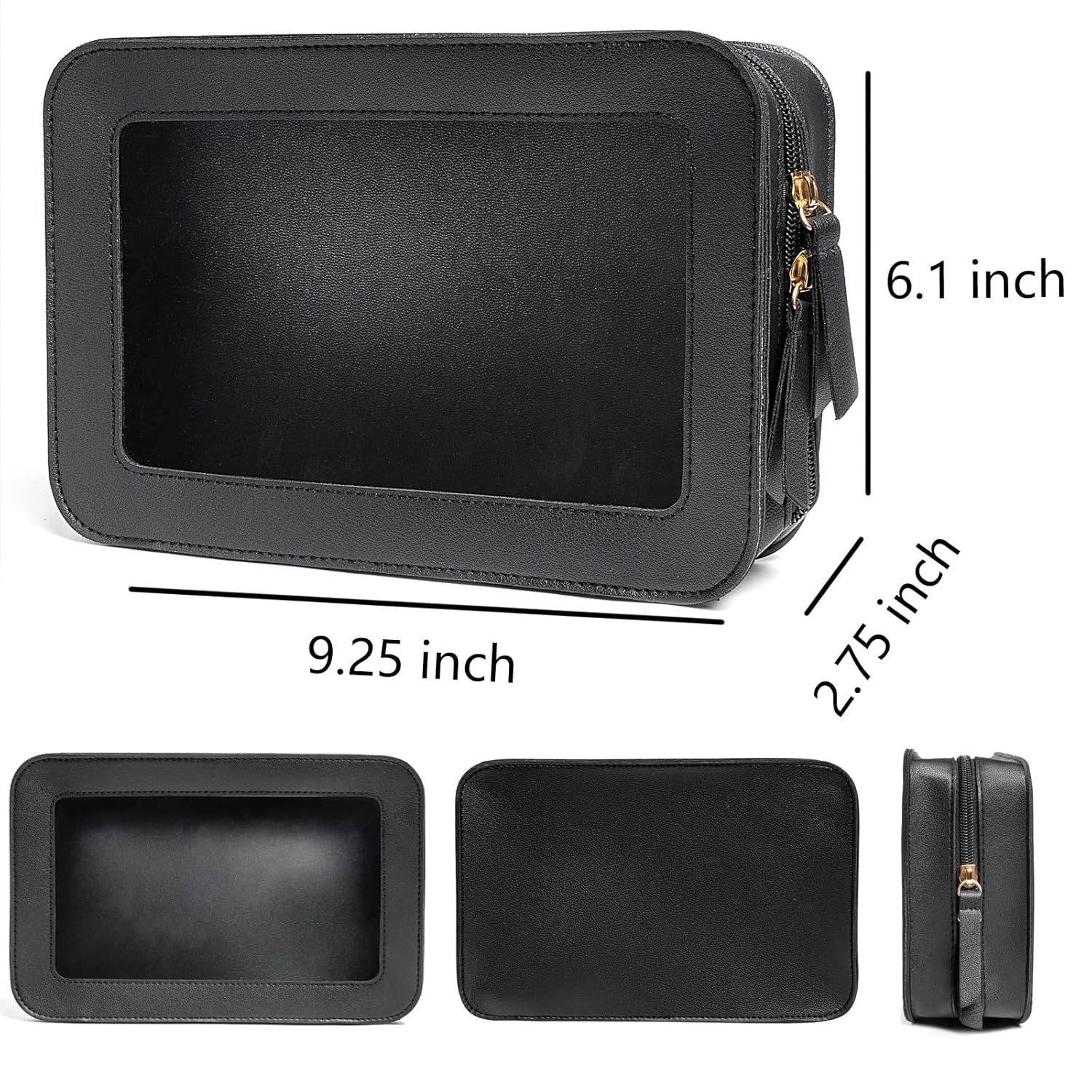 - TRAVEL TOILETRY CLEAR MAKEUP BAG: Measuring 9.25'' x 6.1'' x 2.75''(23.5cm x15.5cm x 7cm), our clear makeup bag is elegant ,and stylish, this makeup travel organizer was designed in a minimalist boxy shape and Crafted in beautiful PU leather and finished with polished hardware, the trendy makeup bag is easy to carrying in your handbag or carry-on.