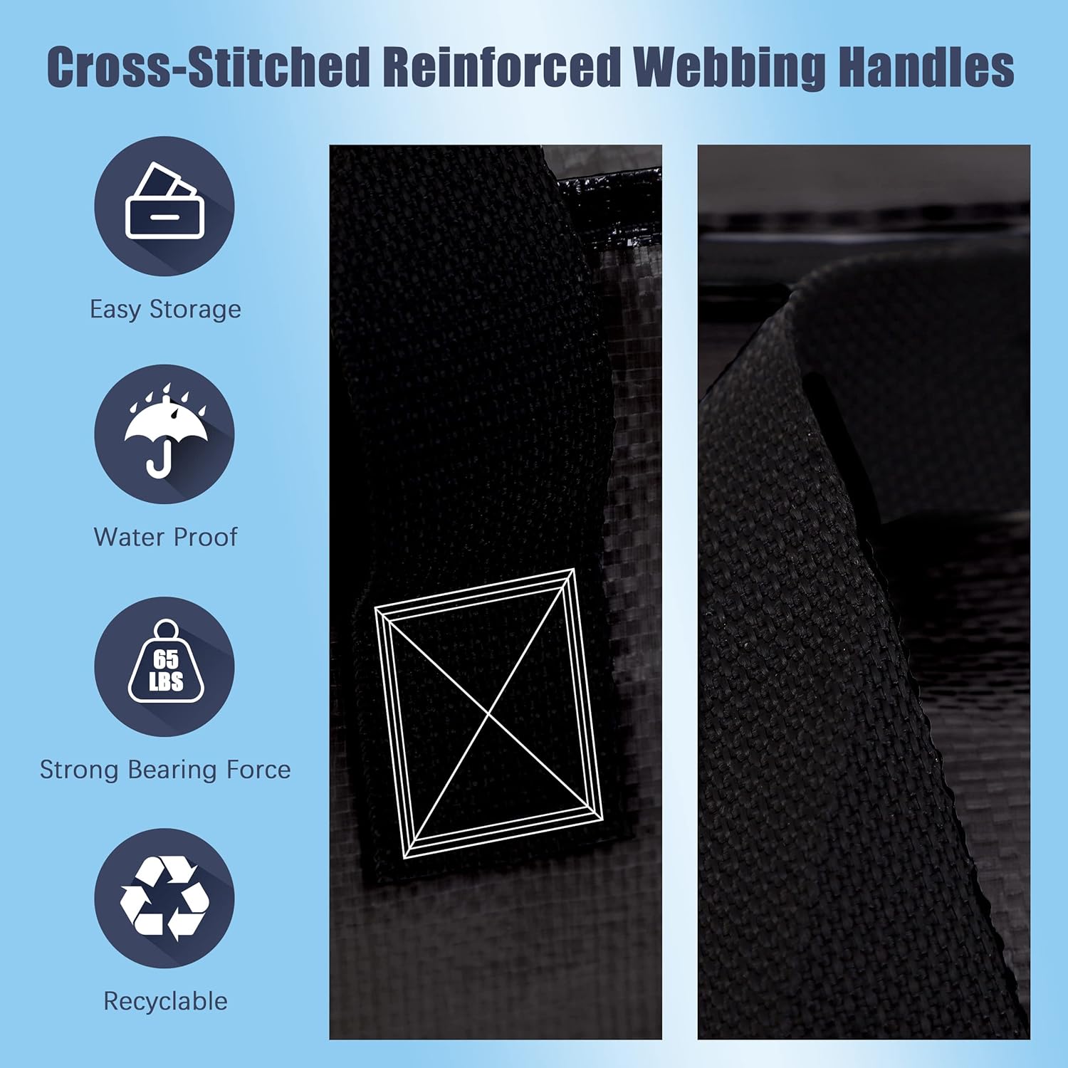 12 Pack Large Strong Moving Bags with Zippers & Carrying Handles - Water-Resistant - Heavy Duty Storage Tote for Space Saving Moving Storage, Fold Flat, Alternative to Moving Box (Black)