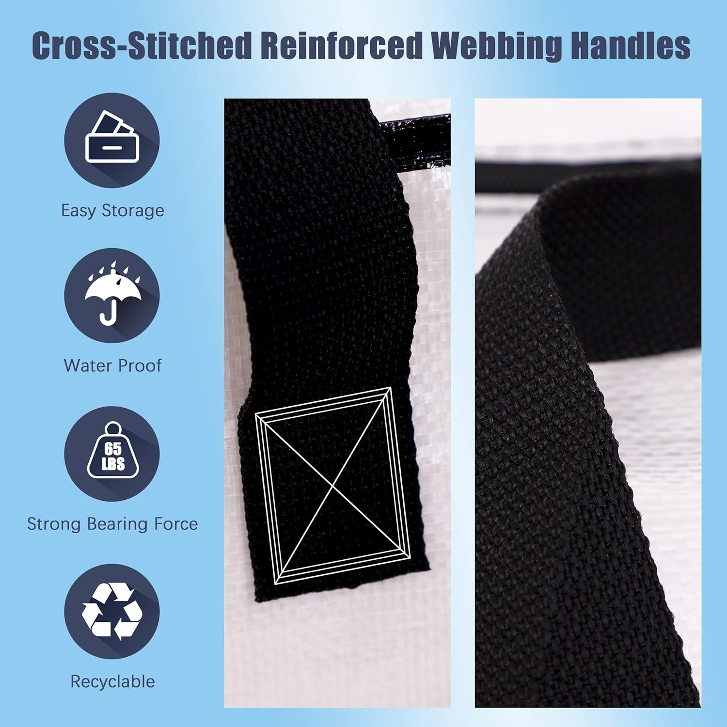- EXTRA LARGE SIZE: 29" W X 13" H X 14" D - 86 Liters or 24 Gallon. They will safely hold up to 65 lbs. Strong moving storage bags in the market. These bags are made from durable woven 180 GSM coated polypropylene woven material. College Dorm Room Essentials for girls, guys.