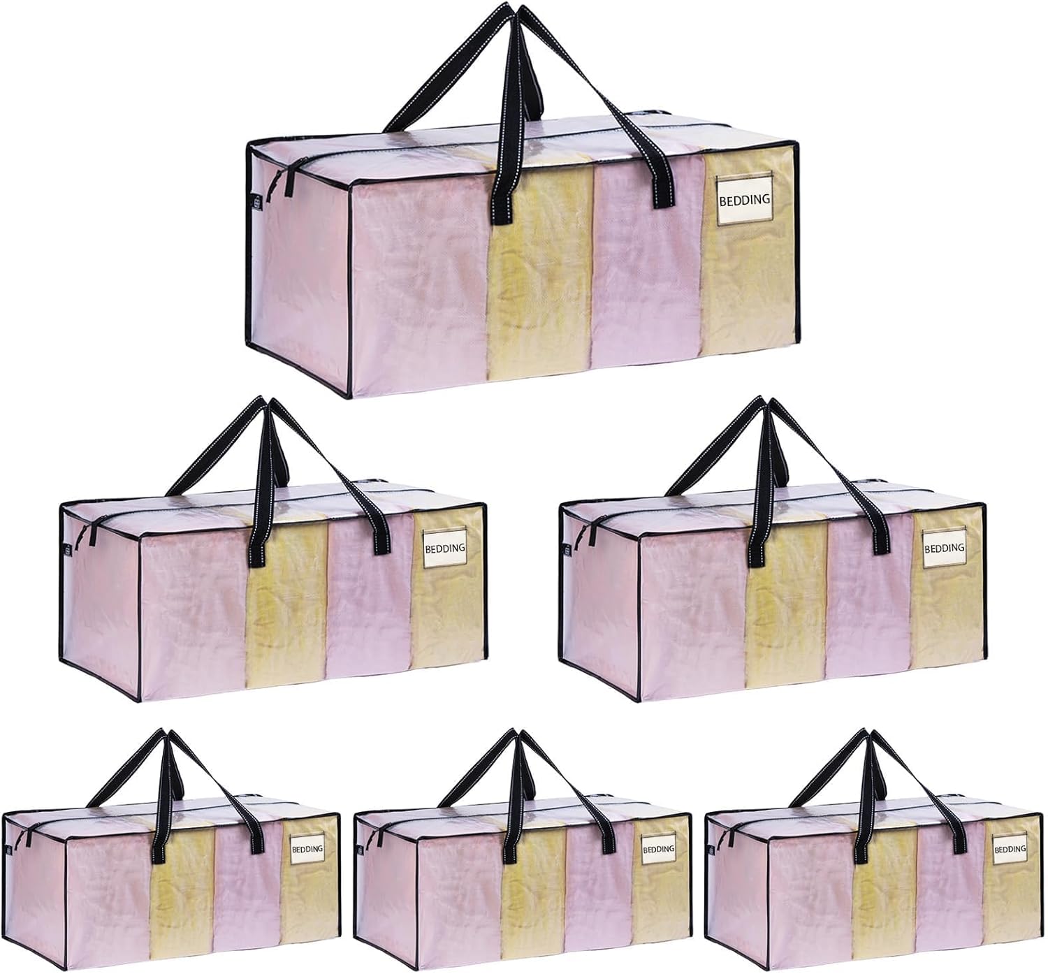 VENO 6 Pack Moving Bags Extra Large Storage Bags for College Move-In, Heavy-Duty Storage Totes, Packing Boxes, and Wardrobe Moving Supplies - Durable Laundry Bags for Clothes (Clear, 6 Pack)