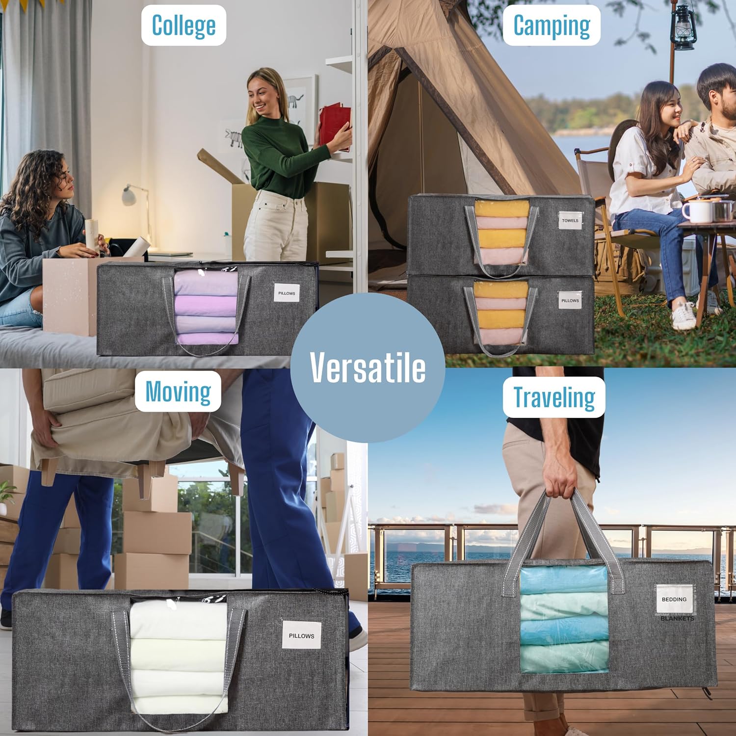 - Multi-Functional- These packing bags serve as the ultimate solution for all your storage needs, whether it's clothes, blankets, or any other items. Built with durability and spaciousness in mind, they're the perfect storage totes for closets, wardrobes, attics, basements, RVs, and beyond. Their stackable and adaptable design makes organizing a breeze, whether at home or in the garage. Plus, their foldable design offers space-saving convenience, allowing for efficient storage between uses.
