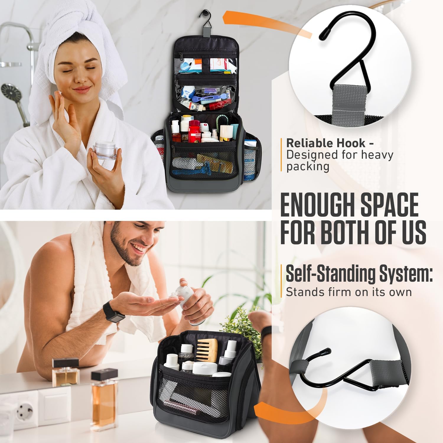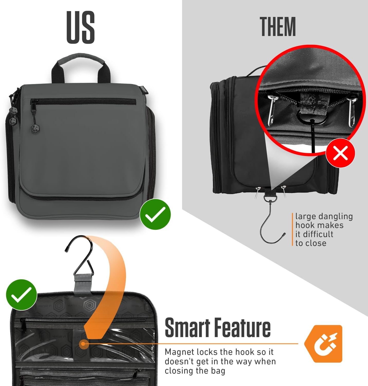 VENTURE 4TH Hanging Travel Toiletry Bag for Women & Men - Travel Organizer with Expandable Compartments & Removable Clear Pouch for Toiletries (Gray)