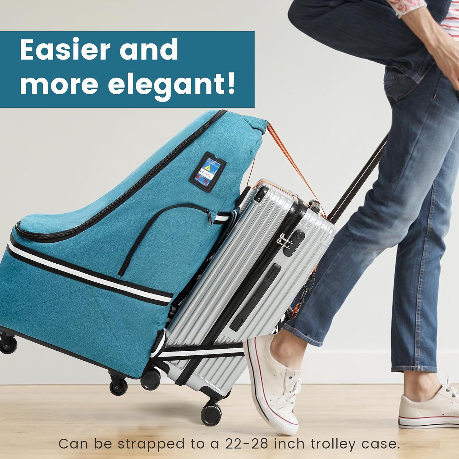Rolling Car Seat Travel Bag, Padded Carseat Travel Backpack for Airplane,Large Durable Carseat Travel Bag with 4 Wheels,Adjustable Shoulder Strap and Waterproof Base Blue
