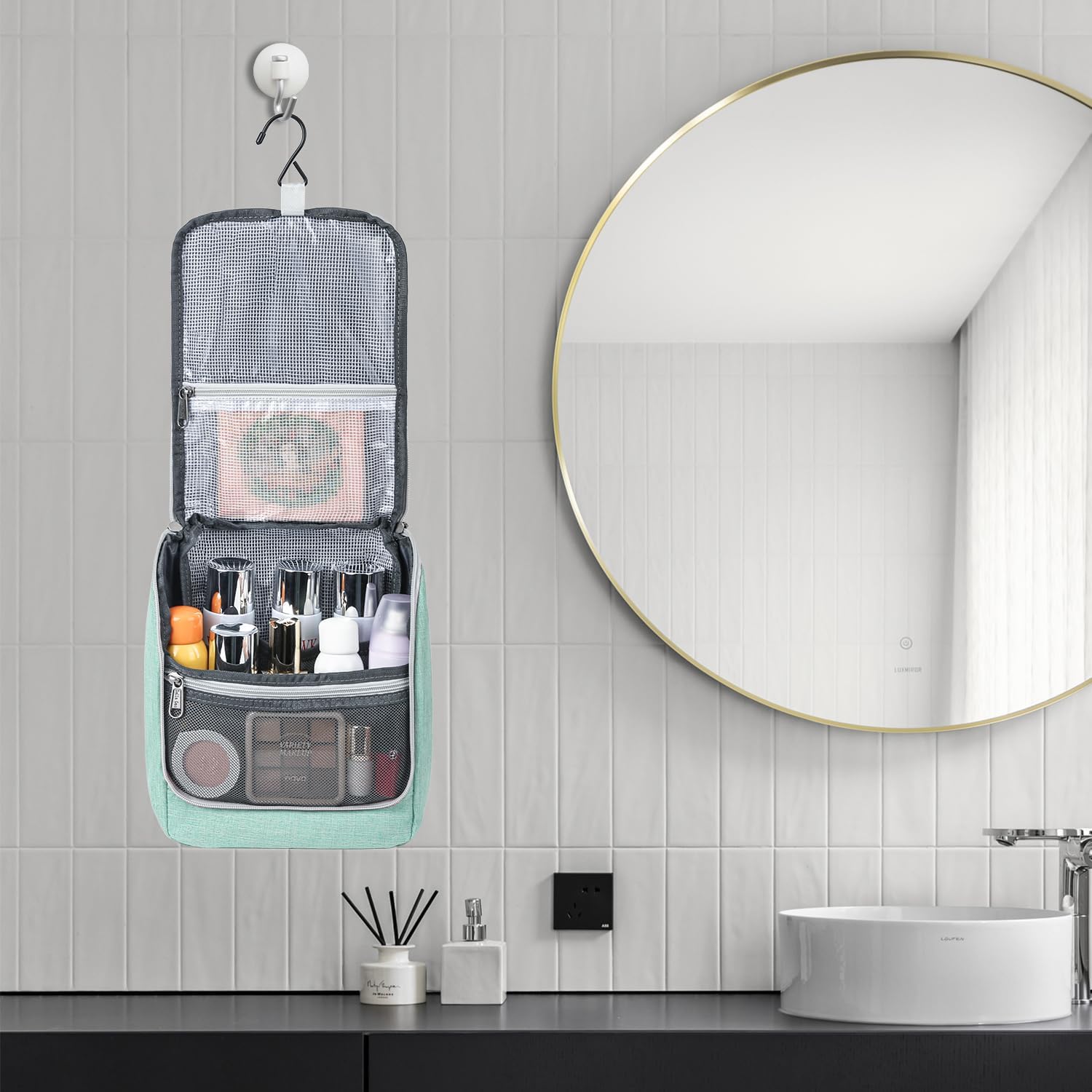 Della Gao Hanging Toiletry Bag for Men and Women, Portable Travel Makeup Bag Cosmetic Bag Toiletries Organizer, Bathroom Bag, Water Resistant Nylon - Green