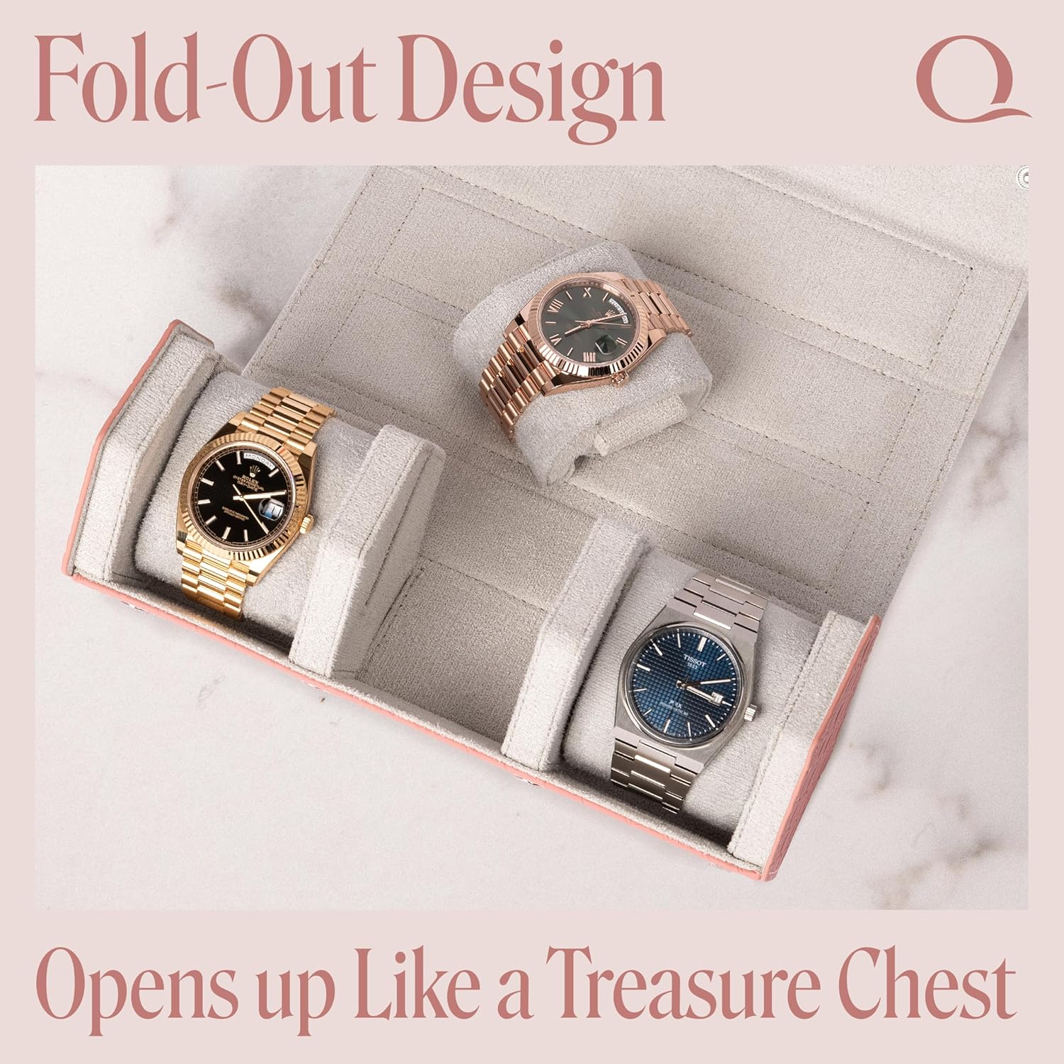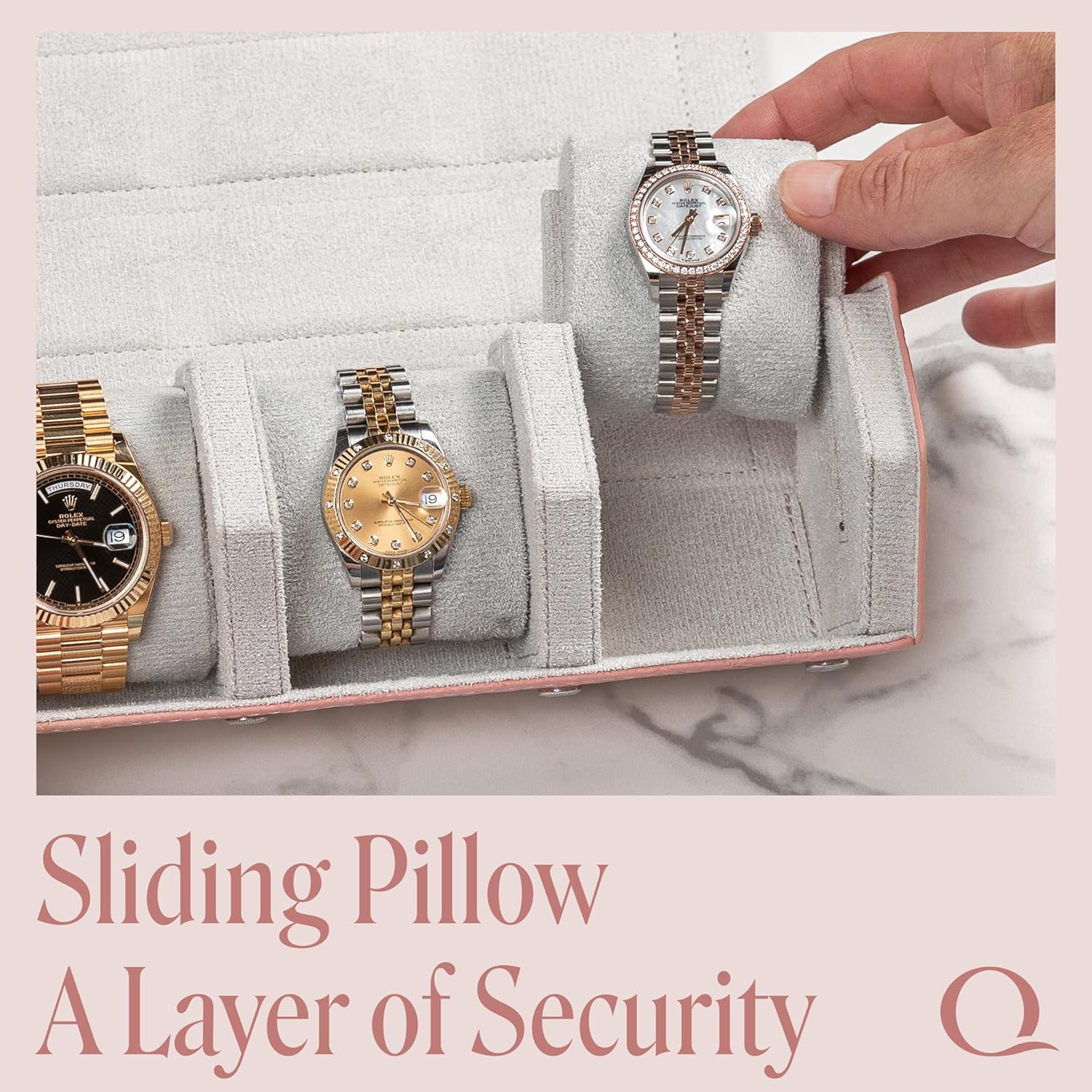 - Portable Watch Rolls For Travelling - Our triple watch roll travel cases are the perfect size for carry on convenience. The "M" shaped cushions and slide-in rail guarantees a snug and secure watch carrying case