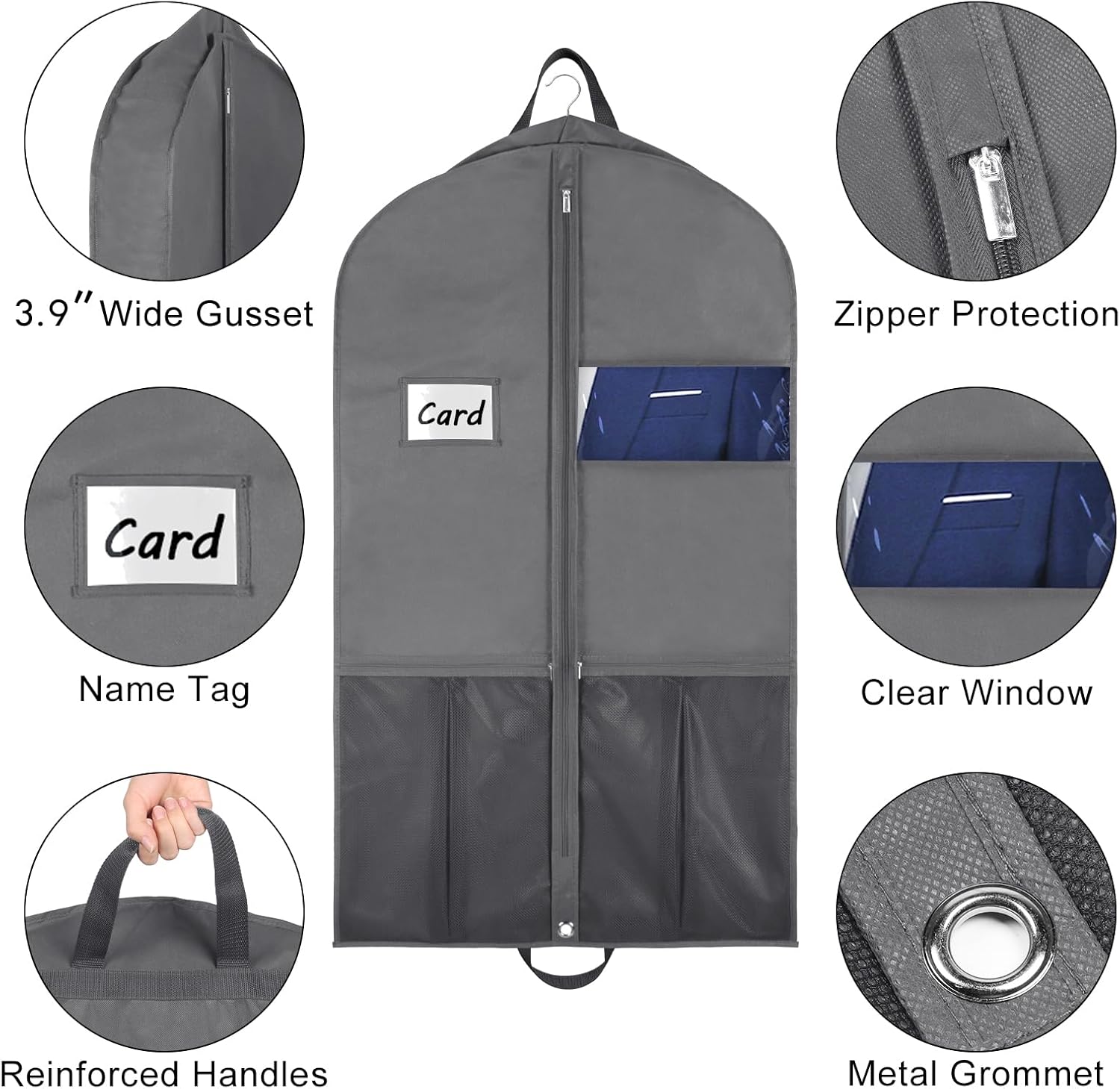 Zilink 43" Suit Bags for Closet Storage and Travel Gusseted Hanging Garment Bags for Men Suit Cover for Travel with Handles for Coats, Jackets, Shirts,Dresses, Grey