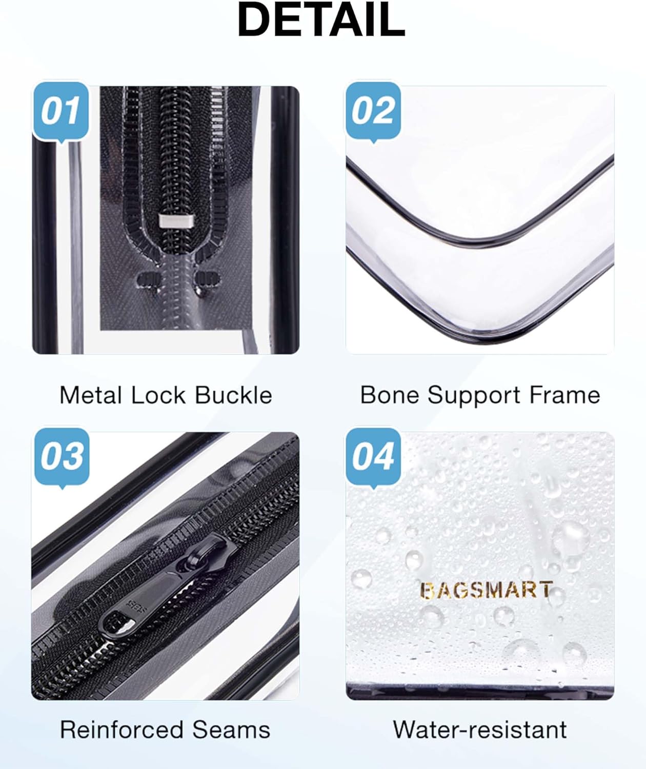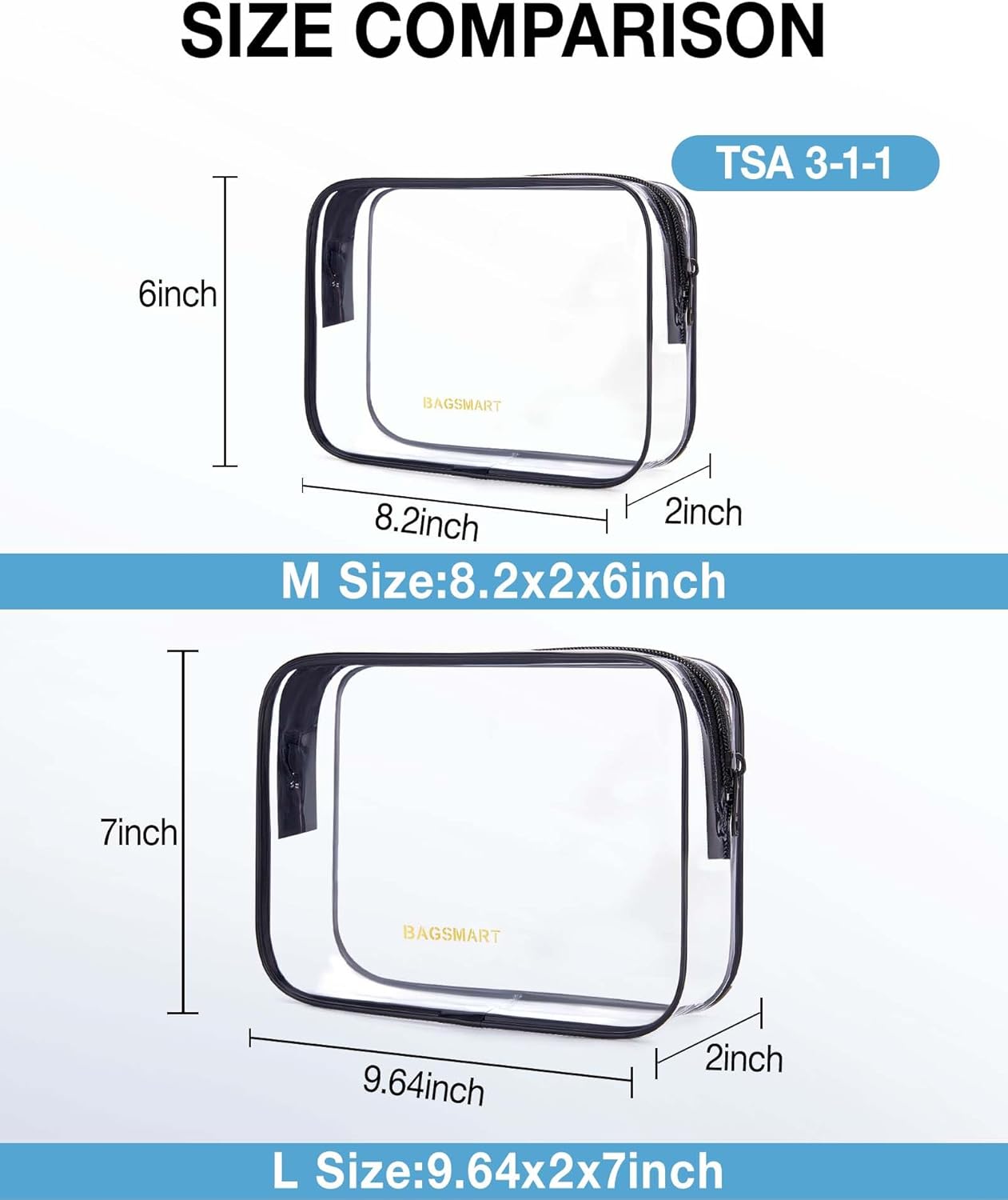 BAGSMART Clear Toiletry Bag, TSA Approved Travel Toiletry Bag Carry On Travel Accessories Bag Airport Airline Quart Size Bags water-resistant Makeup Bag for Women