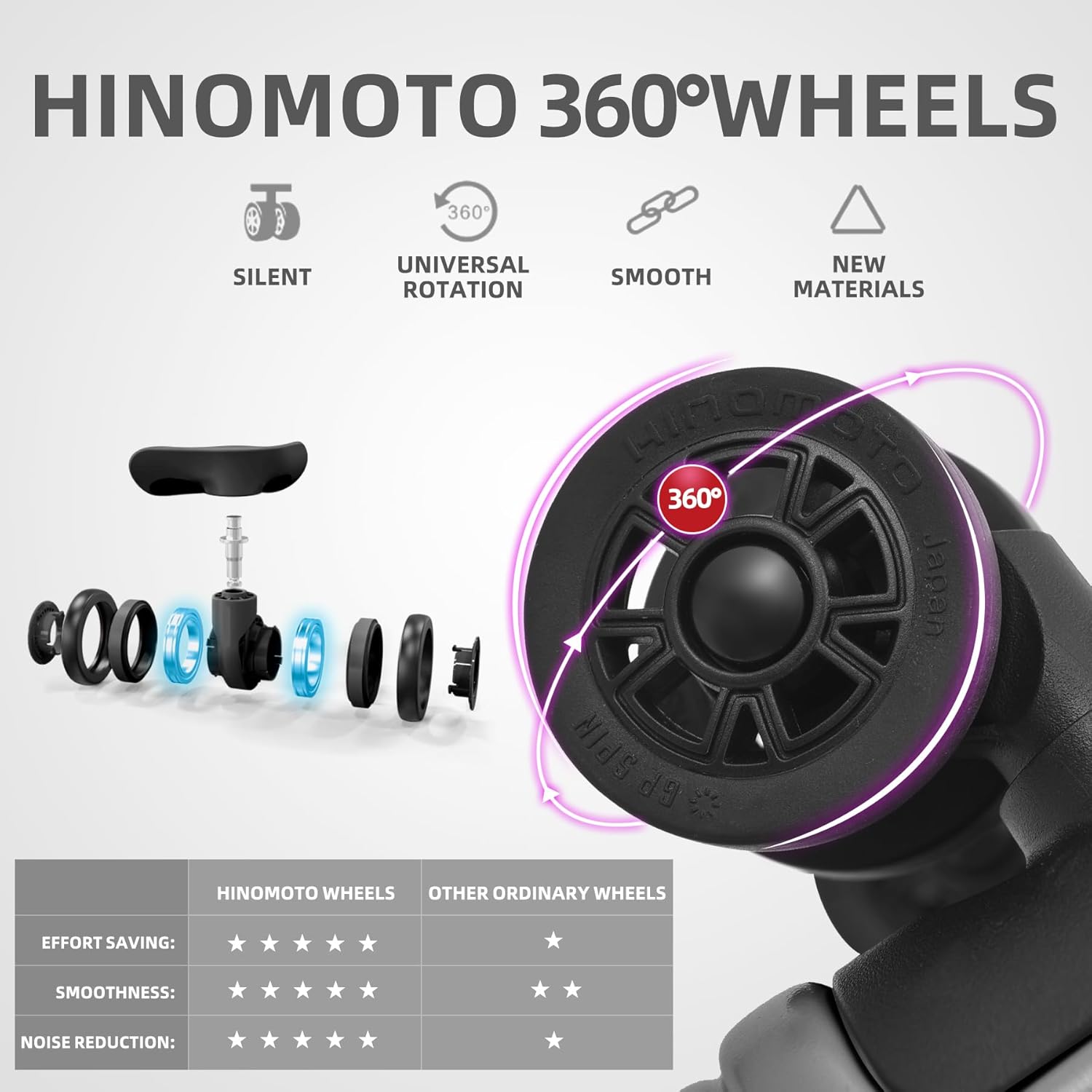 - With 360° Universal Wheels & Adjustable Handle: The luggage has dual 360° Universal spinner wheels that glide along effortlessly in any direction and over different terrains, the ribbed finish is scratch and scuff resistant. Very silent and smooth in daily use. With the adjustable aluminum alloy tie rod, just adjust the handle height you want.