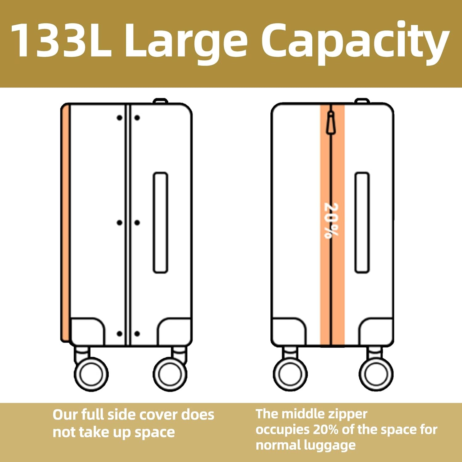 - Large Size & Large Capacity: The 29 inch suitcase designed with the opening side, whcich increase 30% capacity than other same size luggage. Because the full side cover does not take up space, but the other middle zipper occupies 20% of the space for normal luggage. For the 117~133L capacity, you can take it go for a long trip or go abroad study.