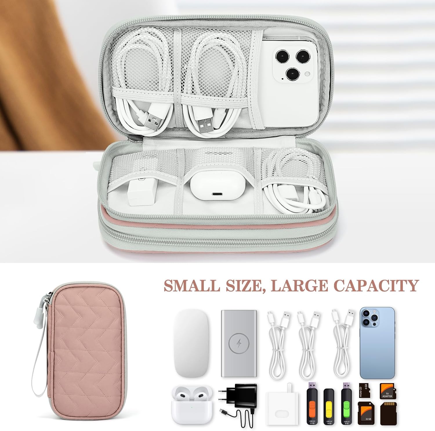 - Double Layers Design: The electronics storage bag has 2 layers interior compartment with enough space to take in your cords, cables, USB drive, cellphone, charger, mouse, flash drive, and other accessories.