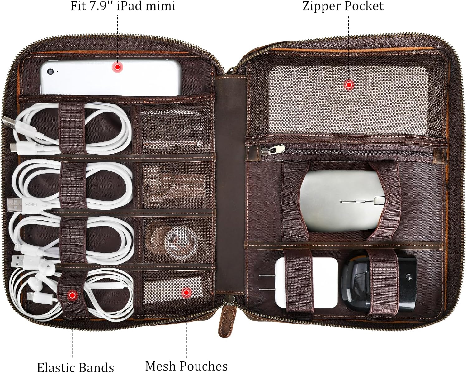 - β Keep Everything Organized - Elastic bands, mesh pouches and zipper pocket can be used to hold the mouse, chargers, mobile power supply and various cables. 1 iPad pocket with well padded to protect your 7.9ββ iPad Mini. Keep all electronics accessories in one place and prevent cables from getting entangled. Say goodbye to chaos and make life simpler and better.