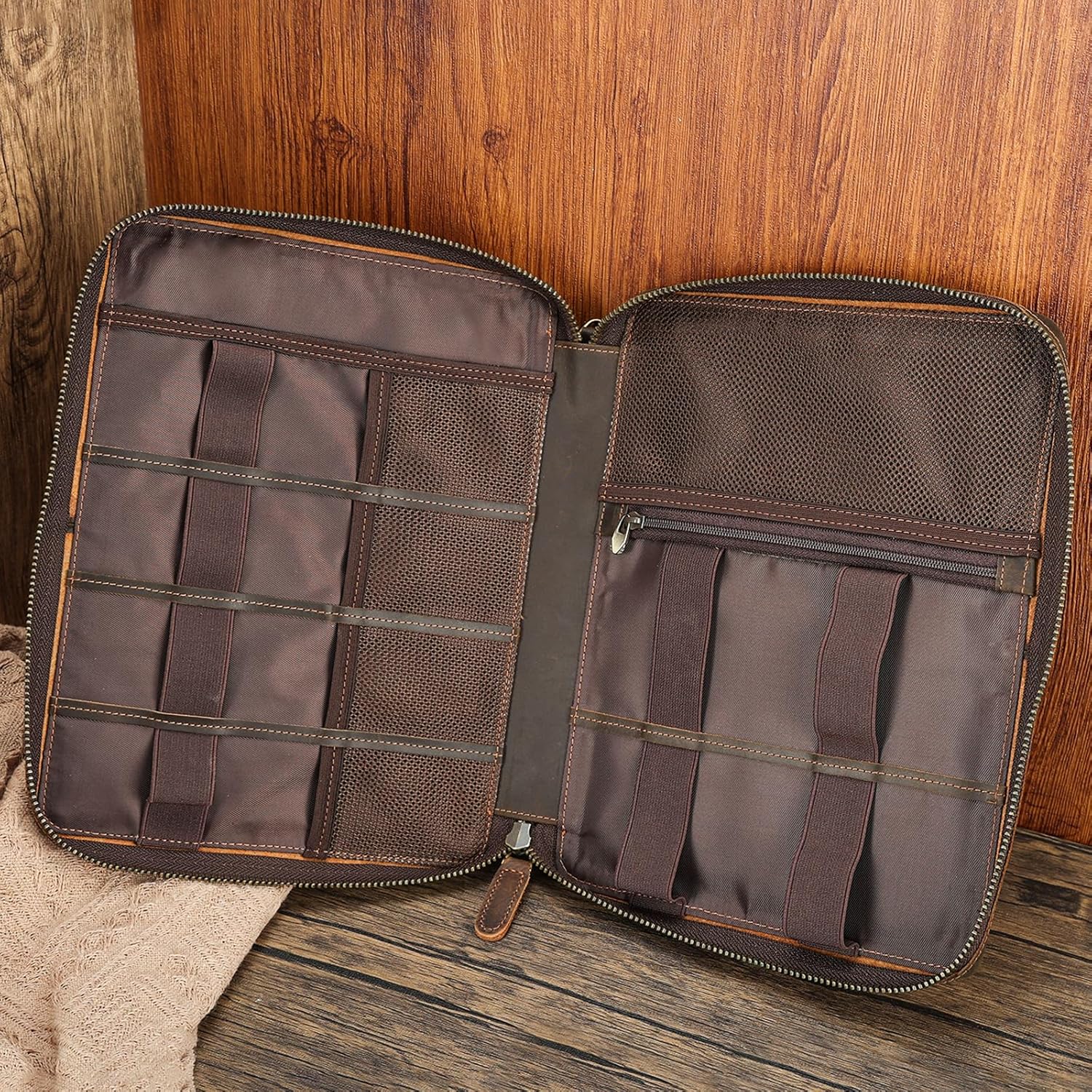 - β Handcrafted by Artisans - Made with thick full grain Italian leather and premium YKK zippers, has a smooth, soft and luxurious feeling in your hand.180 degree fully opening, convenient and quick access to your electronic accessories. (No include cords, electronic accessories)