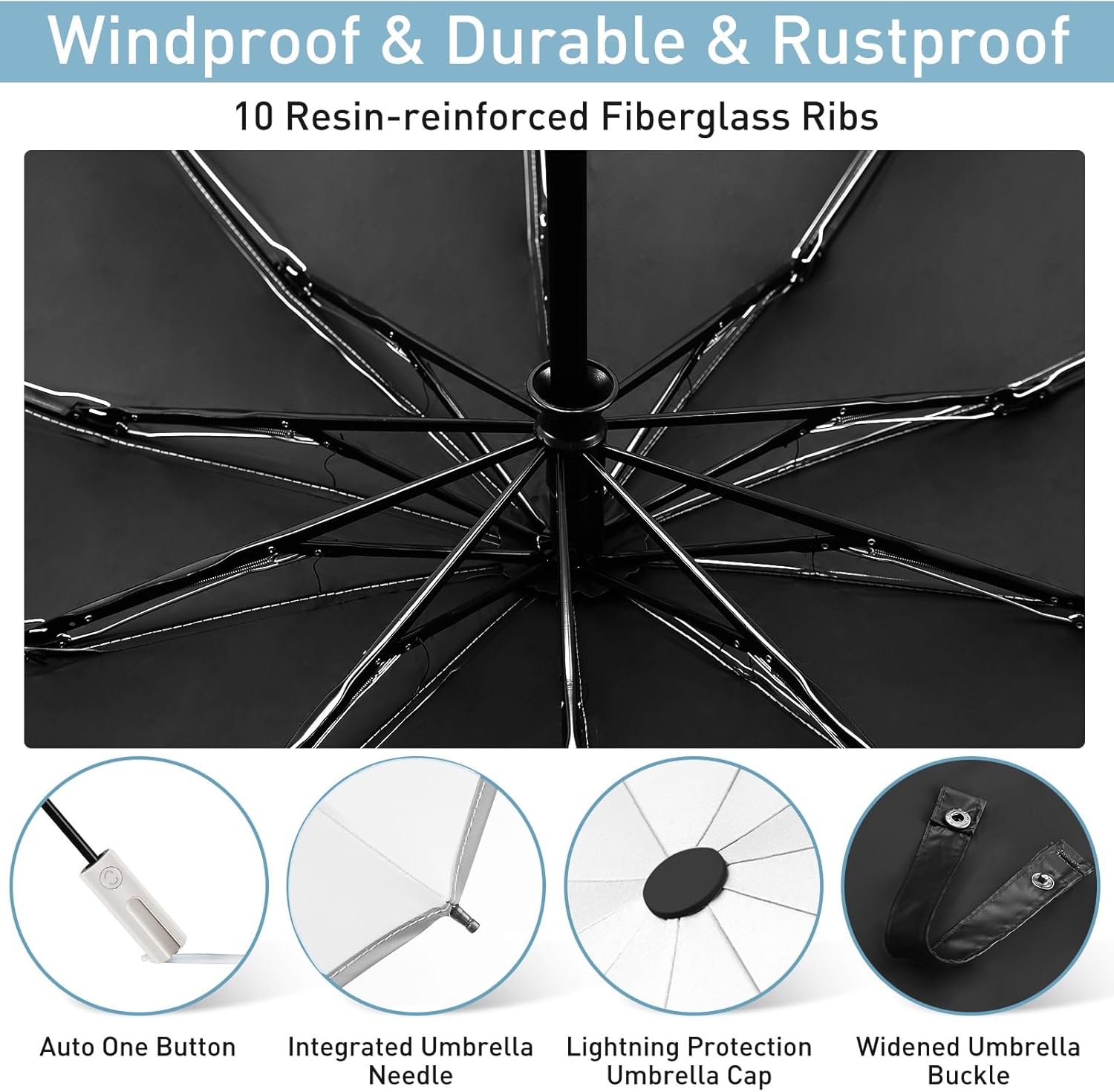 - 【Fully Automatic Inverted Umbrella】 Auto open and close umbrella can be handy for quick entry into a car, building, or tent. You can quickly open or close the travel umbrella at the press of a button. A must-have umbrella for men and women.