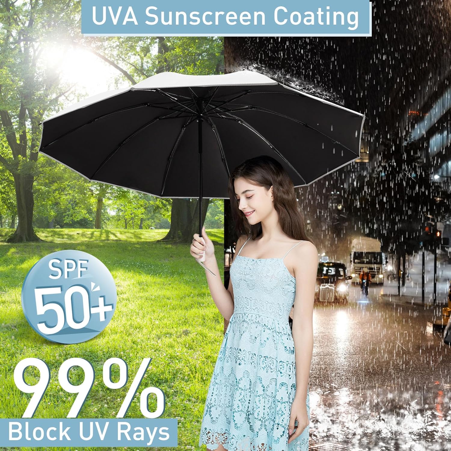- 【Strong Windproof & Waterproof Construction】 Made of 10 reinforced fiberglass ribs which are more lightweight, flexible, and sturdy, if your umbrella is flipped by the strong wind, please don't worry, it can be flipped back to normal use without breaking. Bodyguard UV Umbrella adopts 210T polyester material, highly water repellent, and quick drying. Shake gently after closing the umbrella, then all the drops will go.