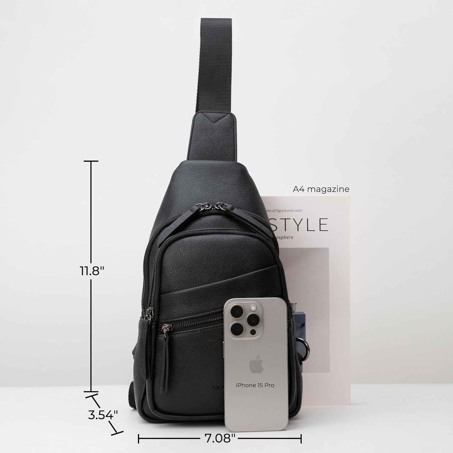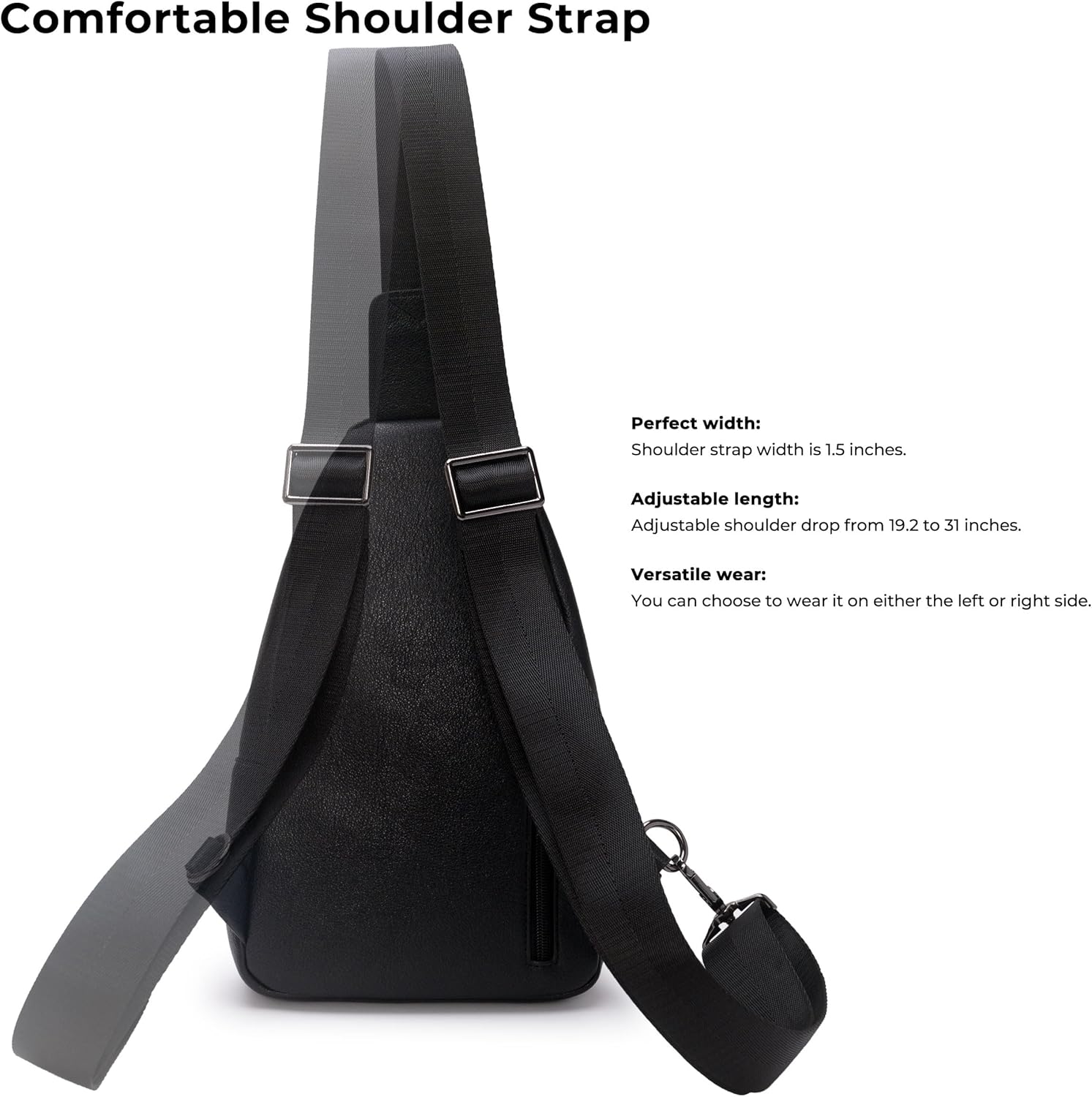 - Dimensions: 11.8"H x 7.08"W x 3.54"D, weighing 1.12 lbs. Adjustable shoulder strap allows for left or right side carry, providing hands-free convenience.