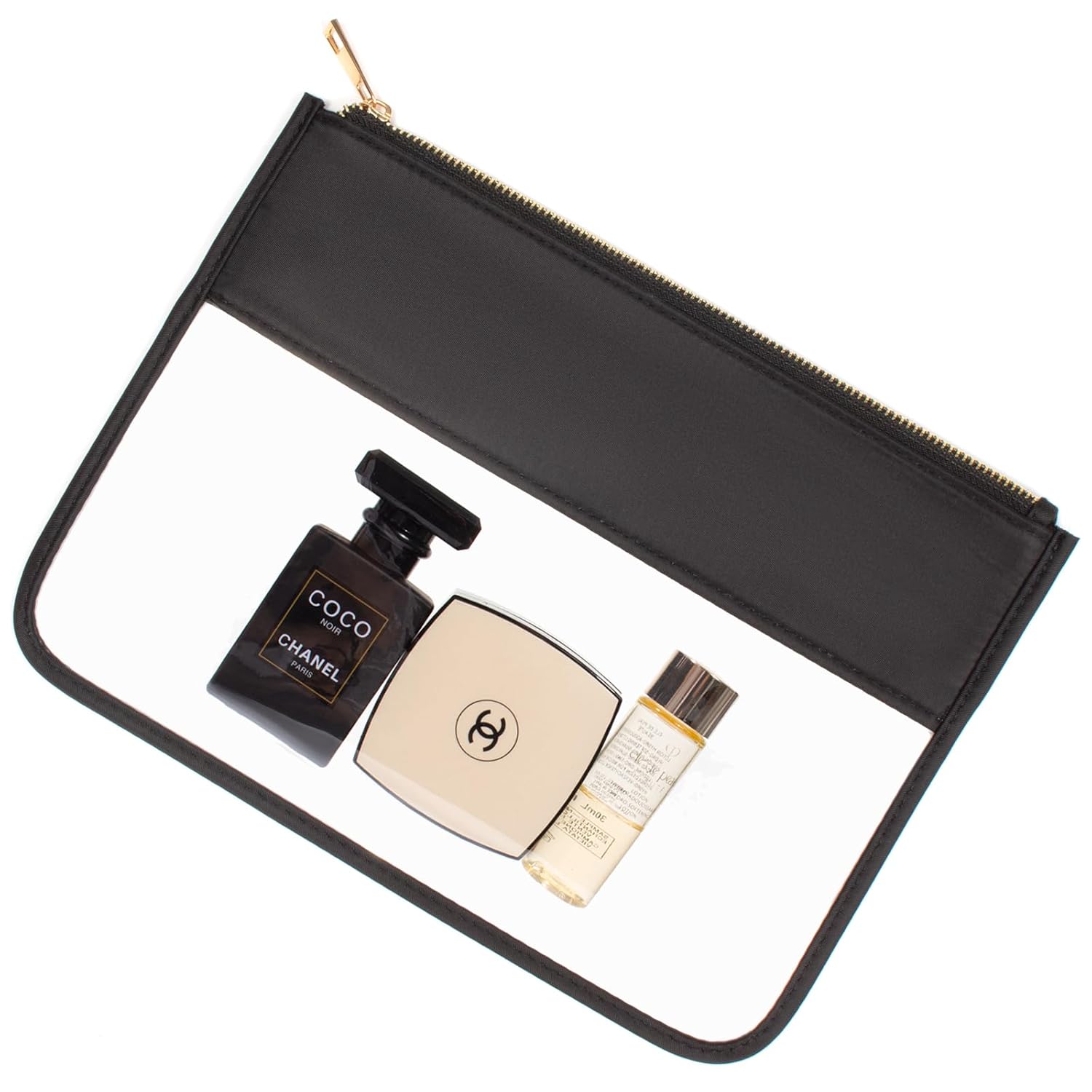 - 【Trendy Design】These gorgeous solid colored PU leather clear make up bags have handmade chenille letter patches at the top, clear middle, and a thick gold zipper and detachable wrist strap, lightweight and easy to clean, I love stuffing all my goodies in here.