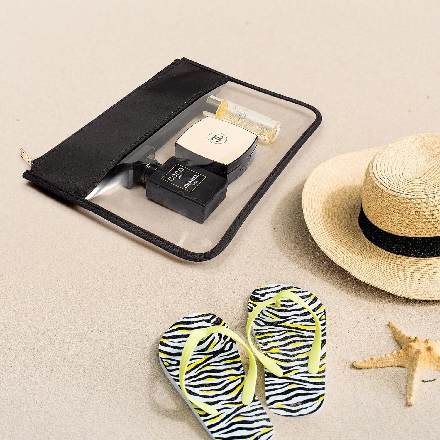 LETGO Clear Makeup Bag Pouch for Travel with Zipper,Clear Cosmetic Bag for Women Waterproof Snacks Bag Stadium Purse Toiletry Bag Bogg Bag Accessories (0-Black)