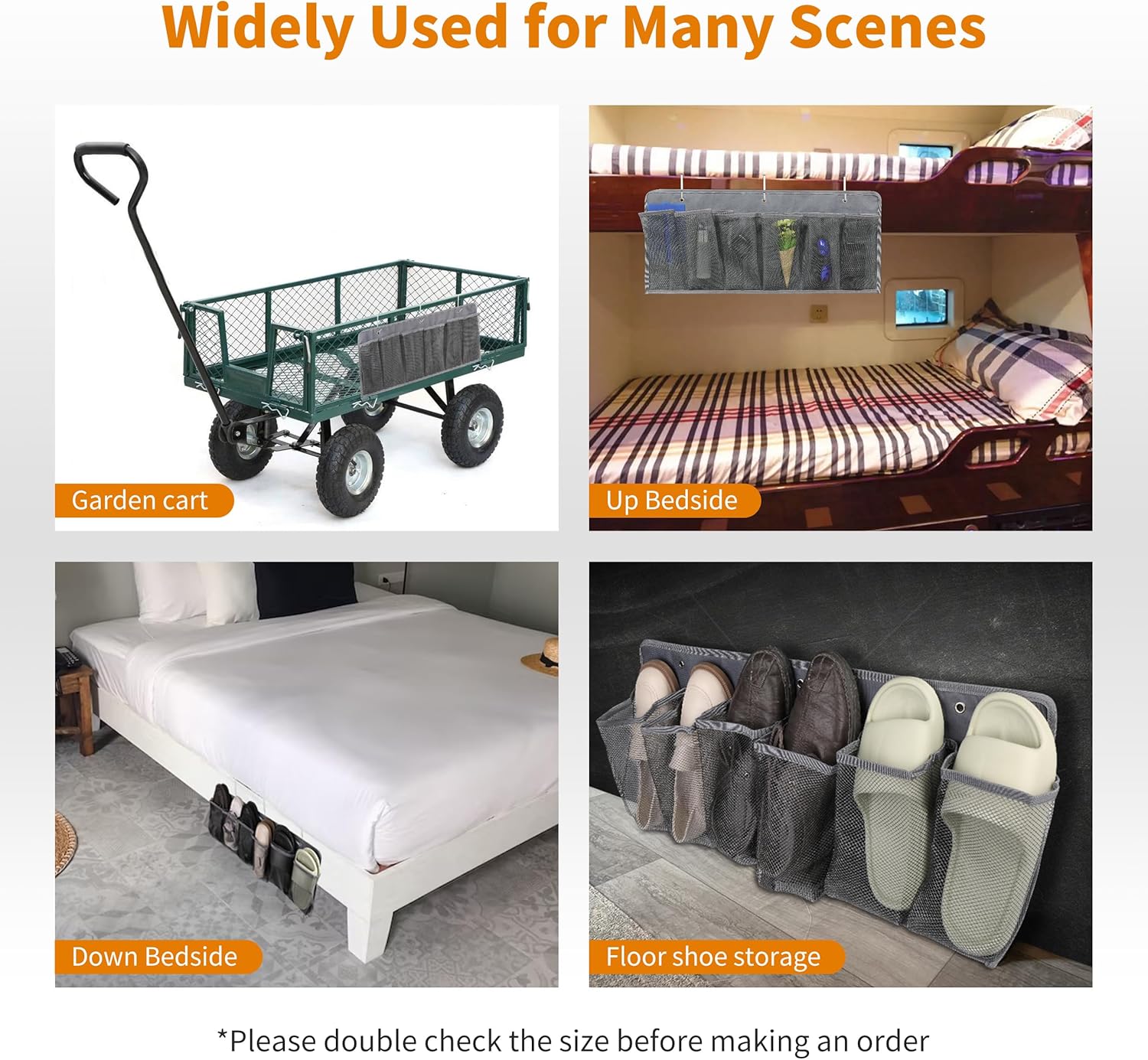 - WIDELY USED: The bedside shoe hanger is suitable for gardening benches, bed rails, shed walls, etc. It can store shoes, cleaning supplies, gloves, tools, etc