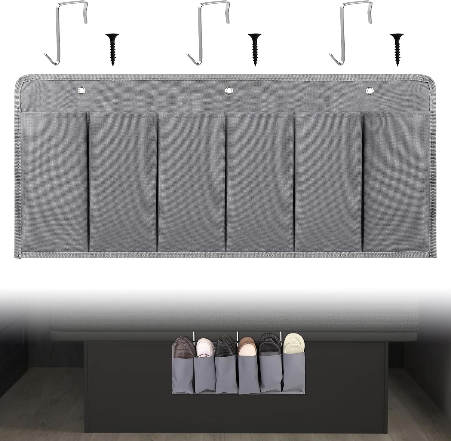 - EASY TO INSTALL: Equipped with 3 hooks and 3 screws, you can hang the shoe organizer on the bed frame or use screws to fix it, save your space, and can be folded when not used
