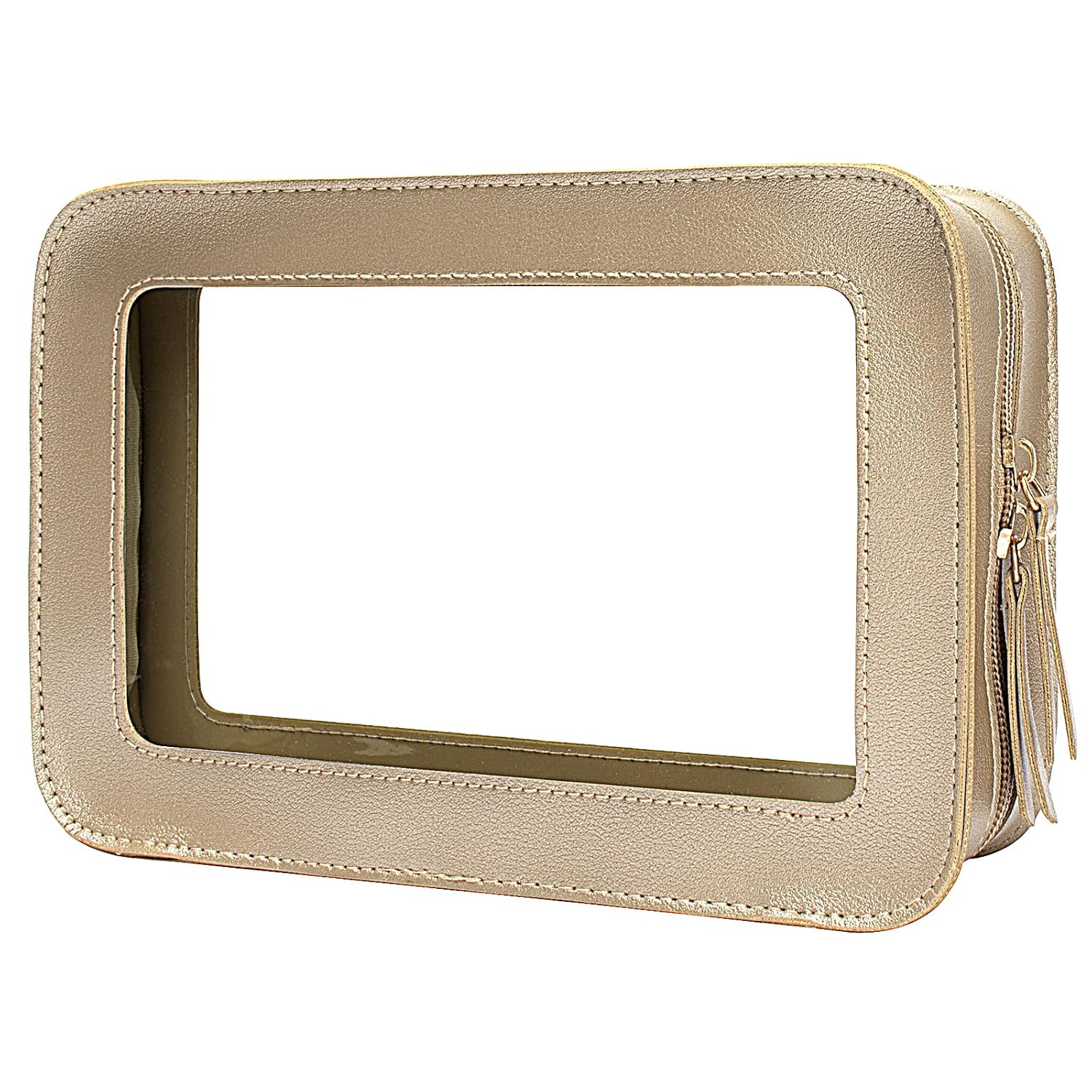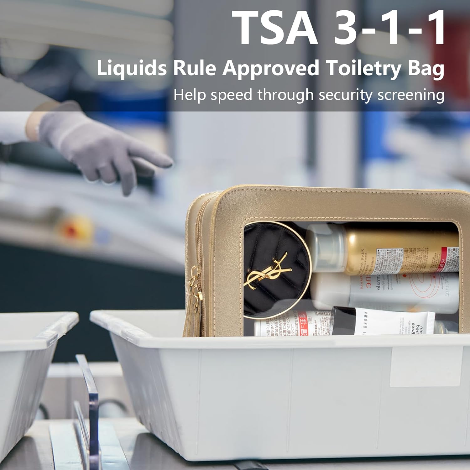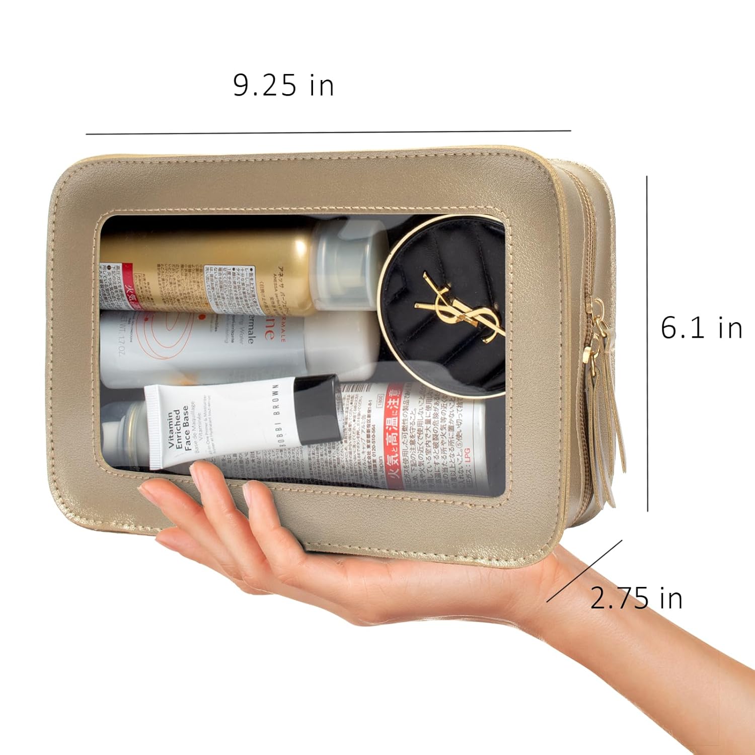 LETGO Clear Makeup Bags, TSA Approved Toiletry Bag with Zipper, Clear Makeup Organizer Fit Carry-on Travel Essentials,Clear Cosmetic Bags for Women Men (O-Gold)