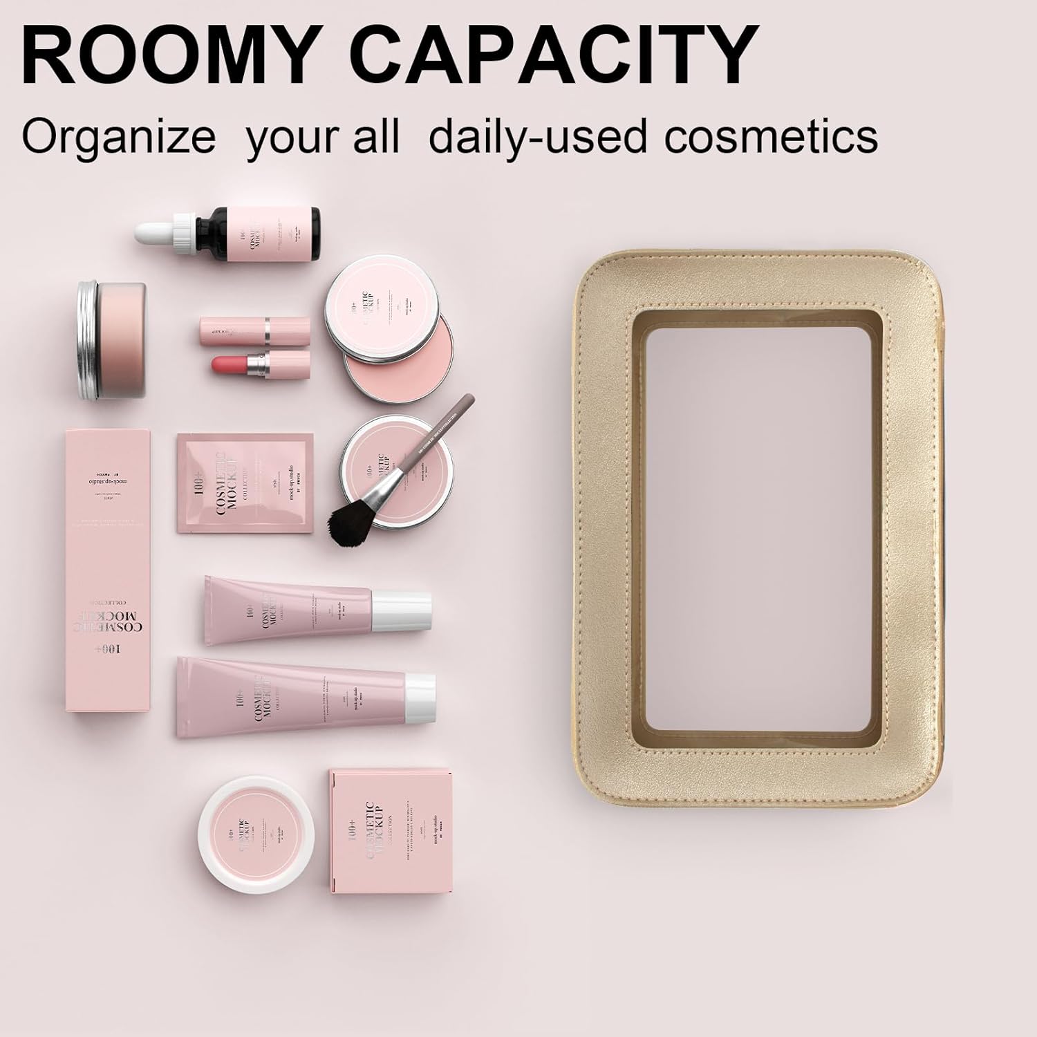 - WATERPROOF & MULTI-FUNCTION:Our cosmetic organizer is roomy to store your make-up foundation, brushes, skincare routine or other little items like art pencils, cables and chargers. Simply wipe all surfaces with a damp cloth or wet tissue to keep the pouch bag clean.