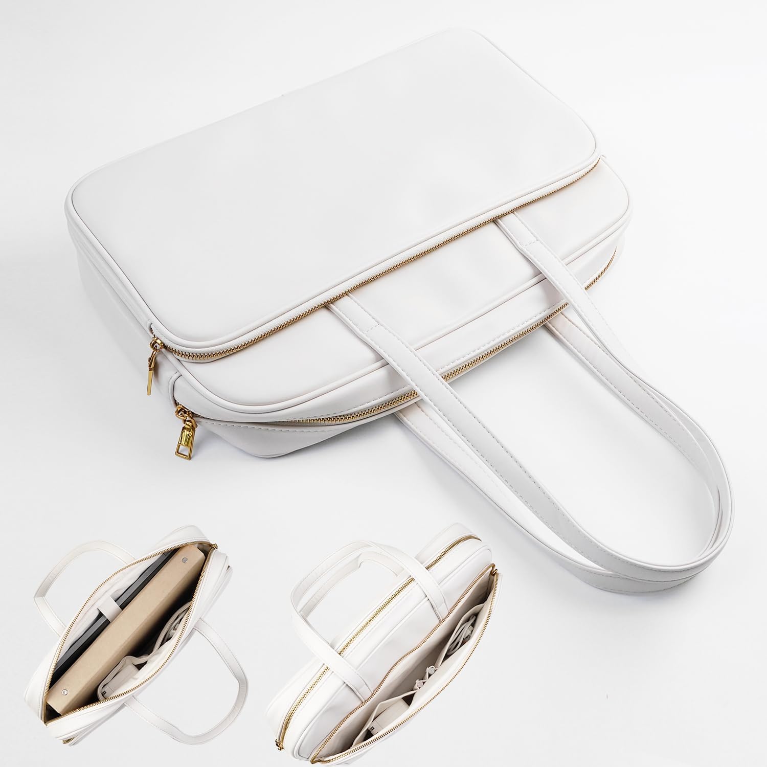 - Premium Durable Material Laptop Bag/Briefcase: This computer tote is crafted in durable, water-resistant, scratch-resistant PU leather and cotton & linen lining. Top smooth metal zipper for easy opening