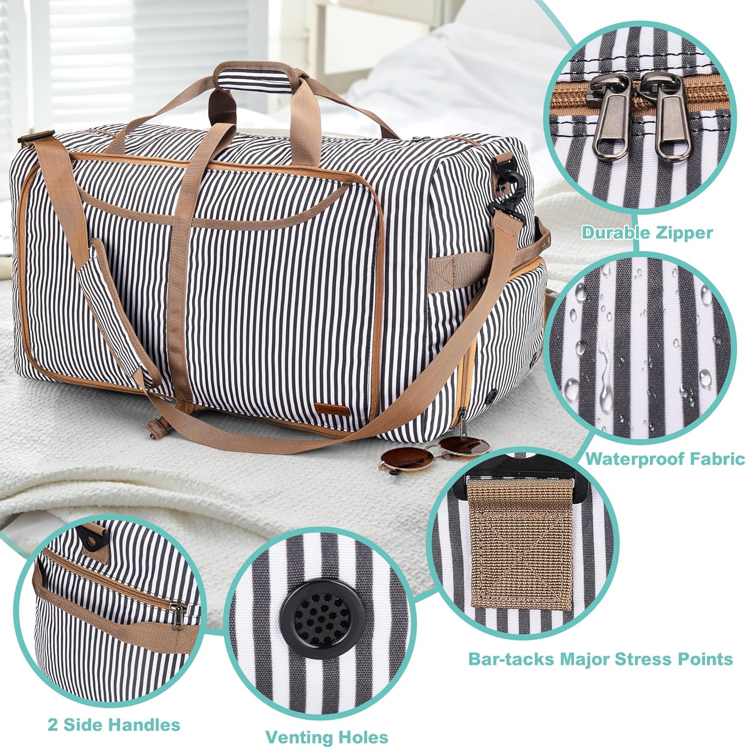 120L Duffle Bag for Travel, Large Foldable Waterproof Travel Duffel Bags Weekender Overnight Bag for Men and Women with Shoe Compartment (Stripe)