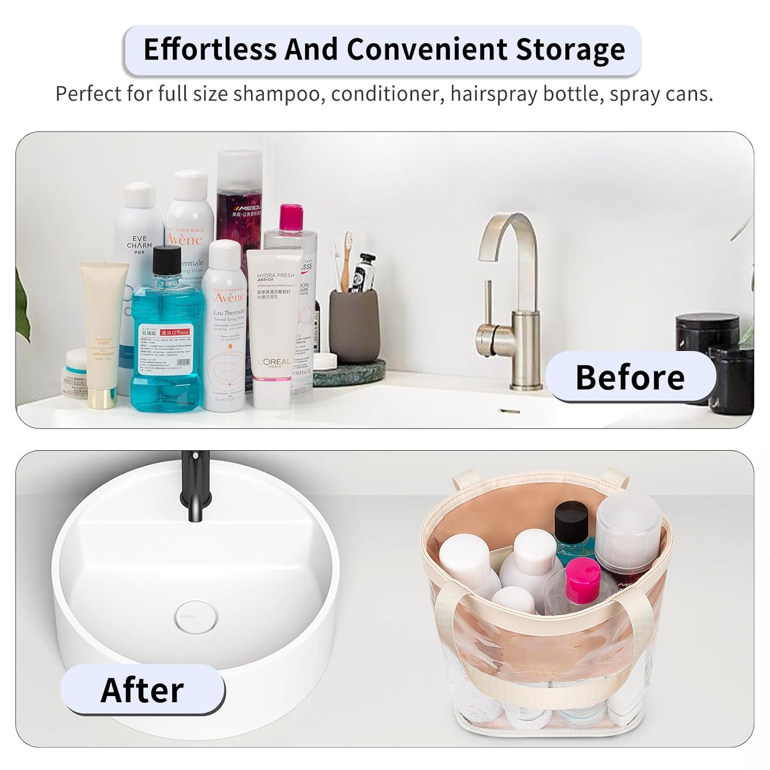 - Large Capacity: Size 8.3*4.7*10.6 inch, clear toiletry bag is designed to hold all your personal essentials in one place: full-size shampoo bottles, beauty products, medicines, shaving cream, razors, hair dryers, makeup, dental care, body lotion, baby care products and more.