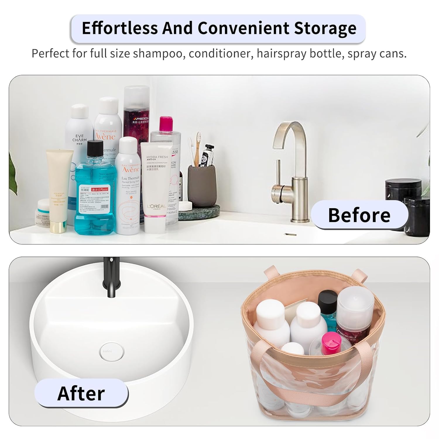- Large Capacity -- Size: 8.3*4.7*10.6 inch, clear toiletry bag is designed to hold all your personal essentials in one place: full-size shampoo bottles, beauty products, medicines, shaving cream, razors, hair dryers, makeup, dental care, body lotion, baby care products and more.