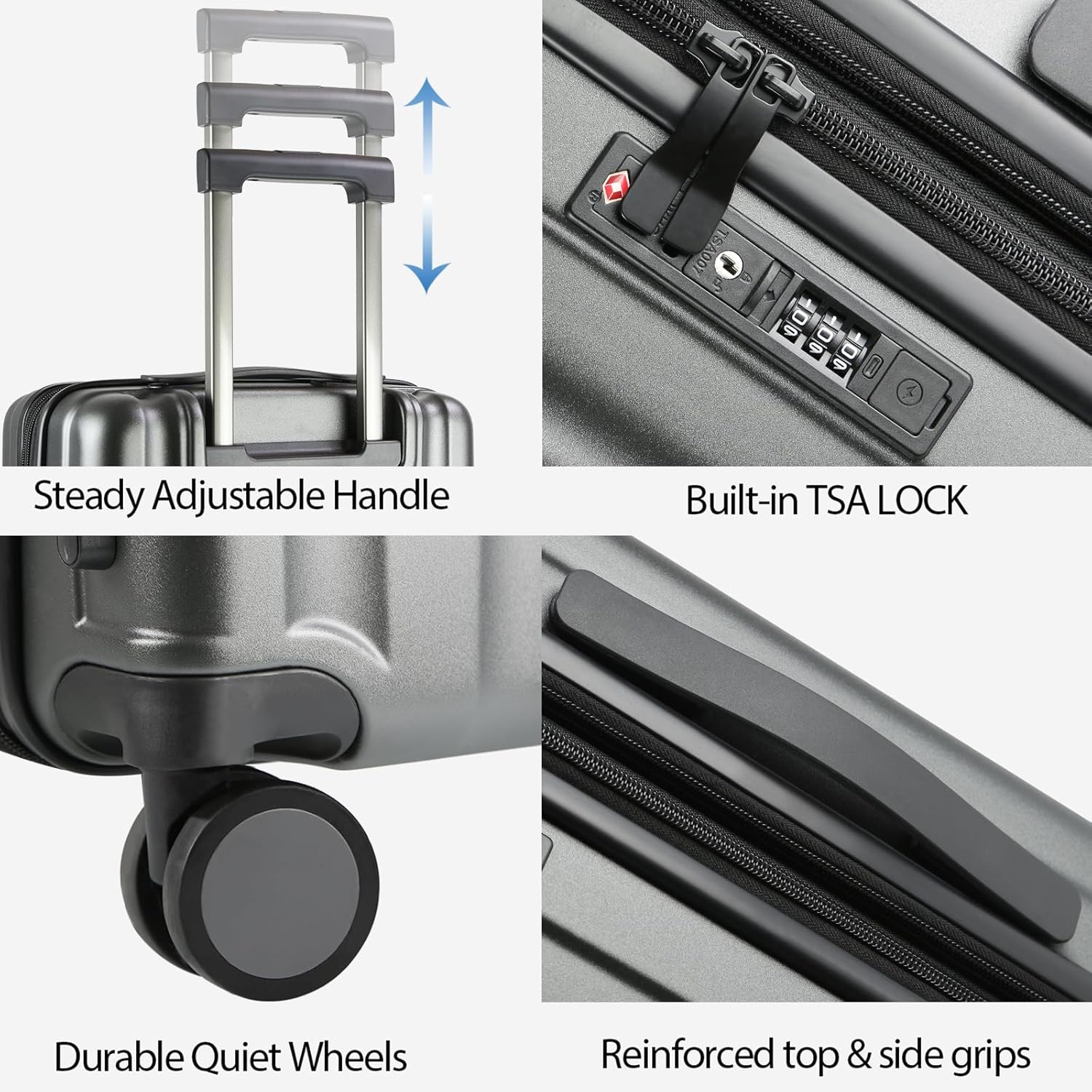 - 【High Quality Accessories】 Durable spinner wheels are composed of precision shaft center and thickened wheel skin, which are wear-resistant, quieter and have stronger bearing capacity. They are applicable to different roads such as cobblestone road and carpet road. Smooth and durable reinforced explosion-proof zipper reverse coil prevents burst zipper. TSA-approved combination lock is safe and convenient. The all aluminum telescopic handle is durable and adjustable in multiple layers.