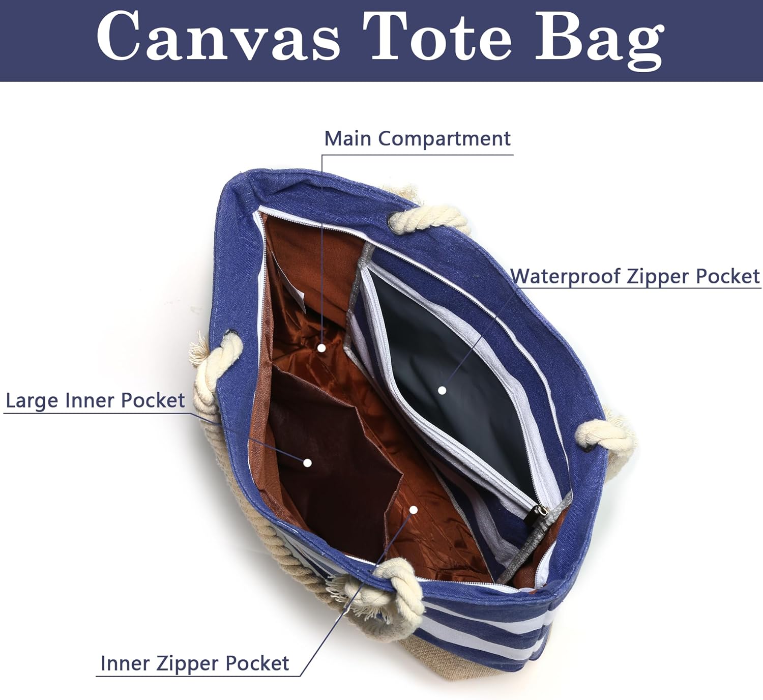 • 【High Quality Zipper】The zip of the canvas beach tote bag has been lengthened, which makes the process of opening easier and more comfortable. No more worry about the zip getting stuck or not opening and closing smoothly, making your use more convenient and enjoyable
