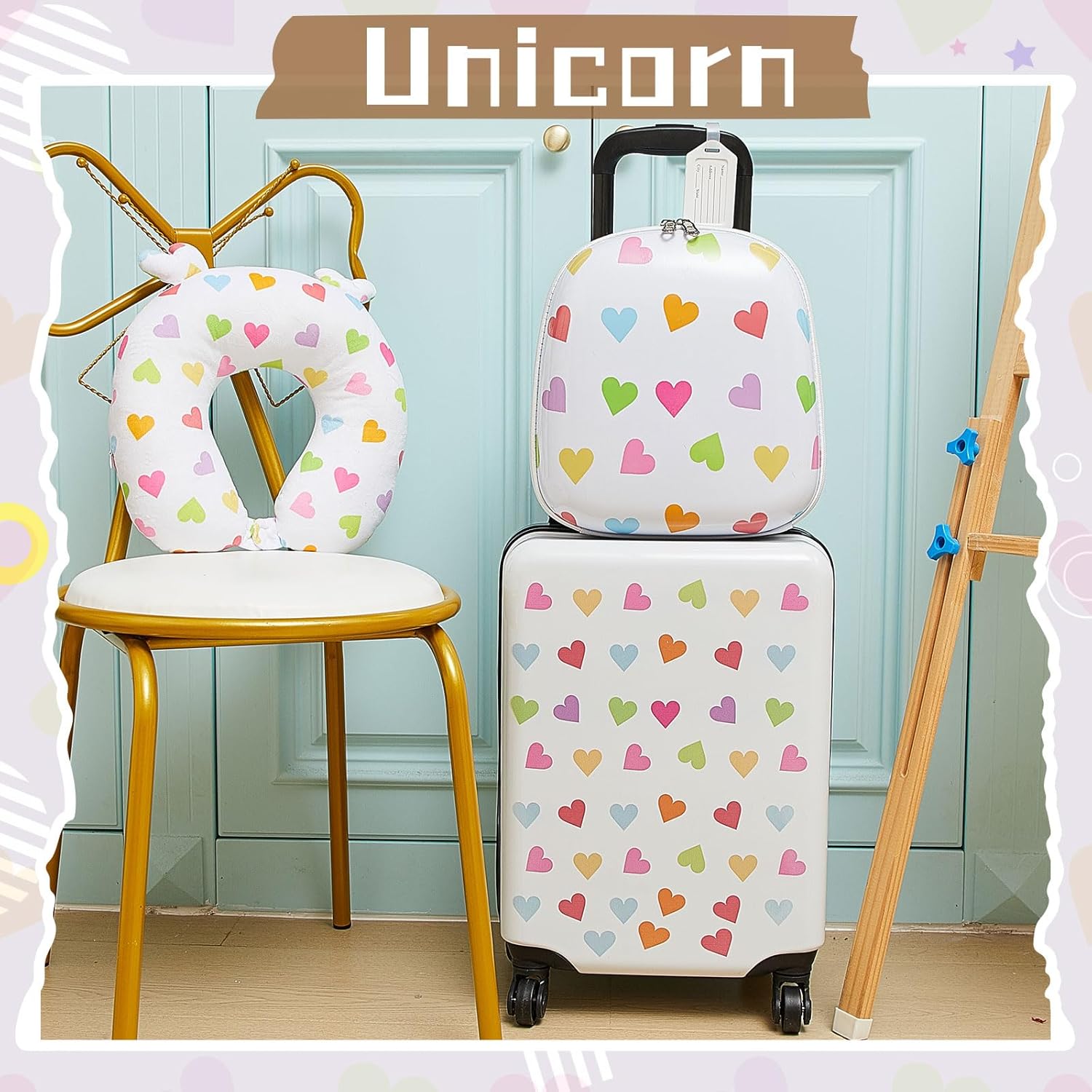 - Cute Printed: our luggage set is printed with heart pictures in a predominantly white color that will definitely make your kids excited to pack their belongings for travel or school