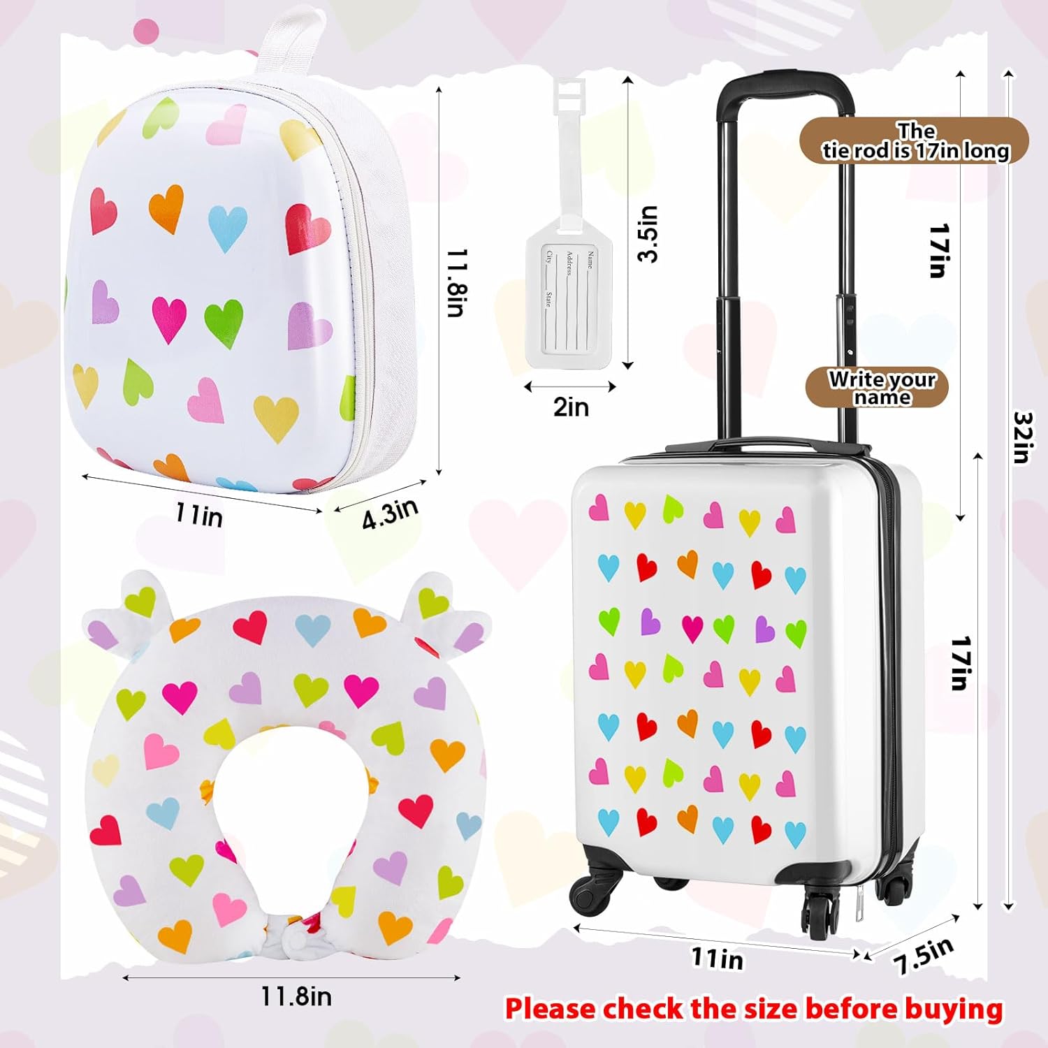 - Considerable Accessories: in addition to suitcase and backpack, the set includes a soft travel neck pillow, as well as a cute name tag in the same heart design, make your girl's journey set complete