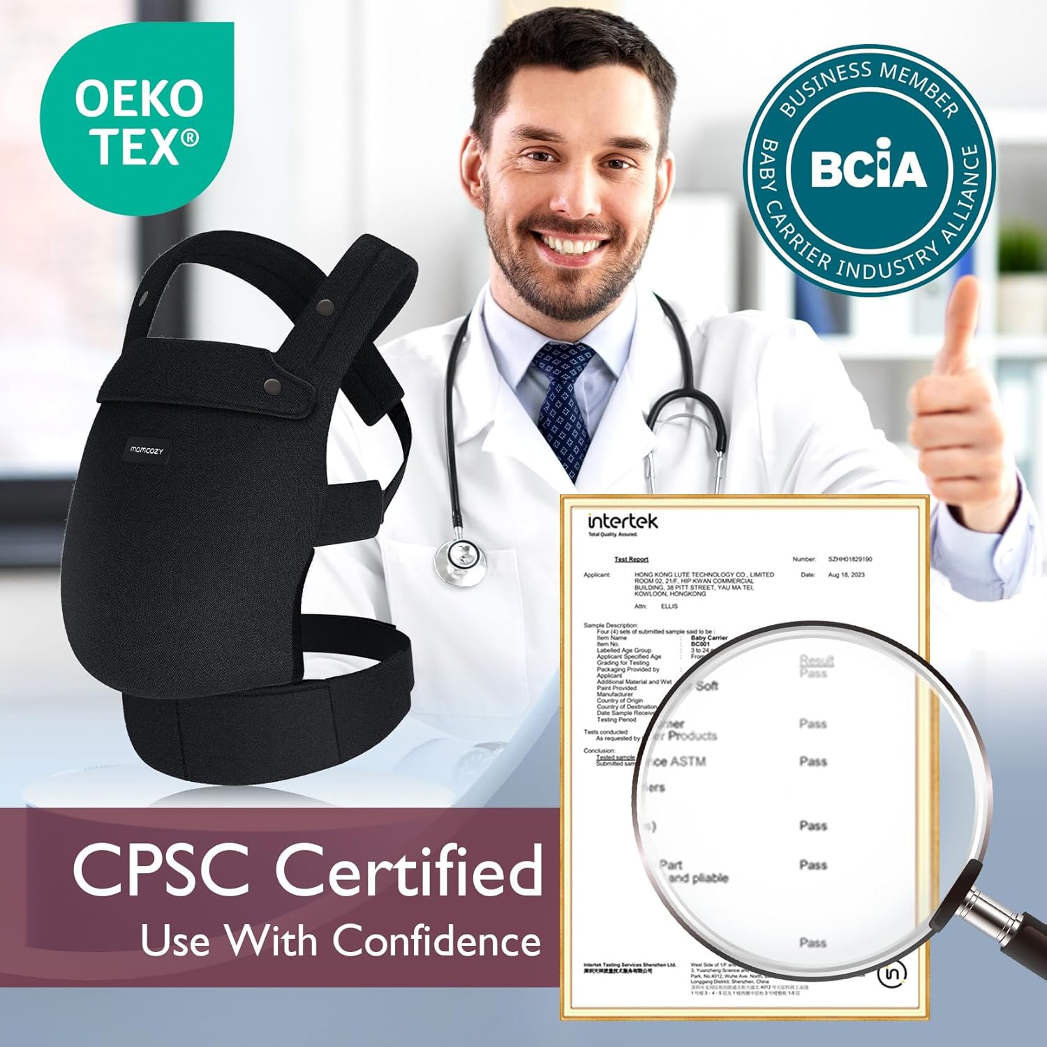 Momcozy Baby Carrier - Ergonomic, Cozy and Lightweight Carrier for 7-44lbs, Effortless to Put On, Ideal for Hands-Free Parenting, Enhanced Lumbar Support, Purehug for Infant to Toddler, Black