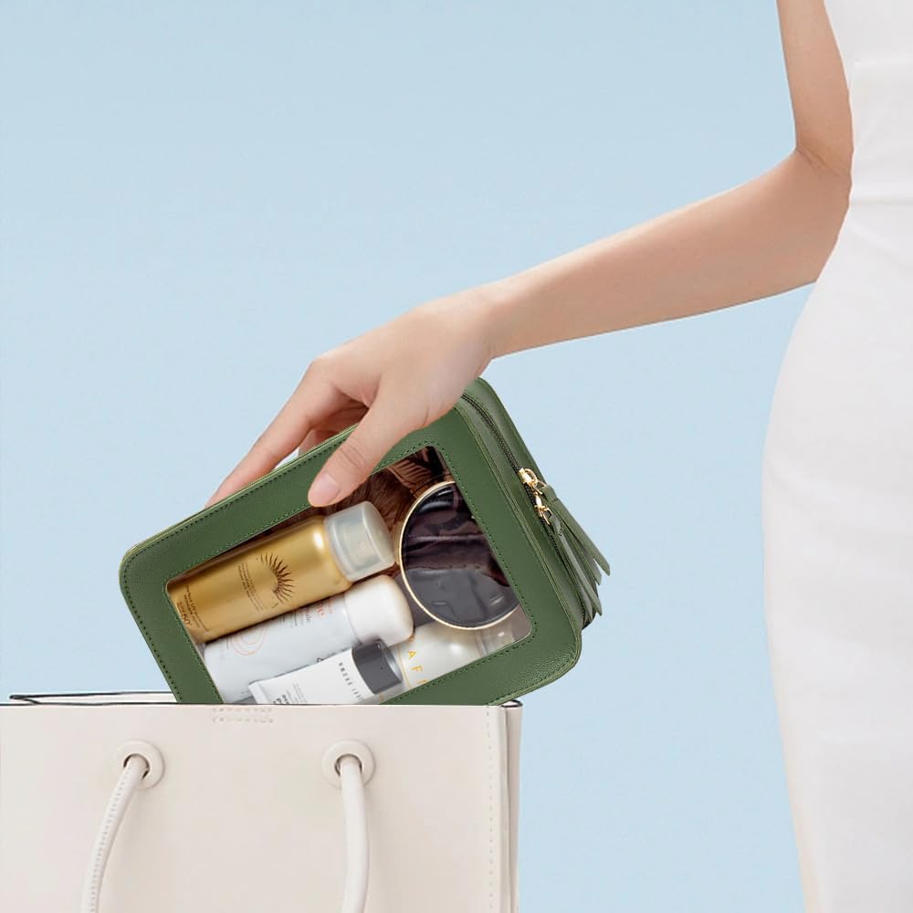 • Clear Design: Our clear toiletry bag is sleek and minimalistic look for your makeup accessories collection. And is designed with a clear PVC window,all items are clear at a glance, and you can quickly choose the cosmetics you need. Size:9.44“*6.1”*2.75“