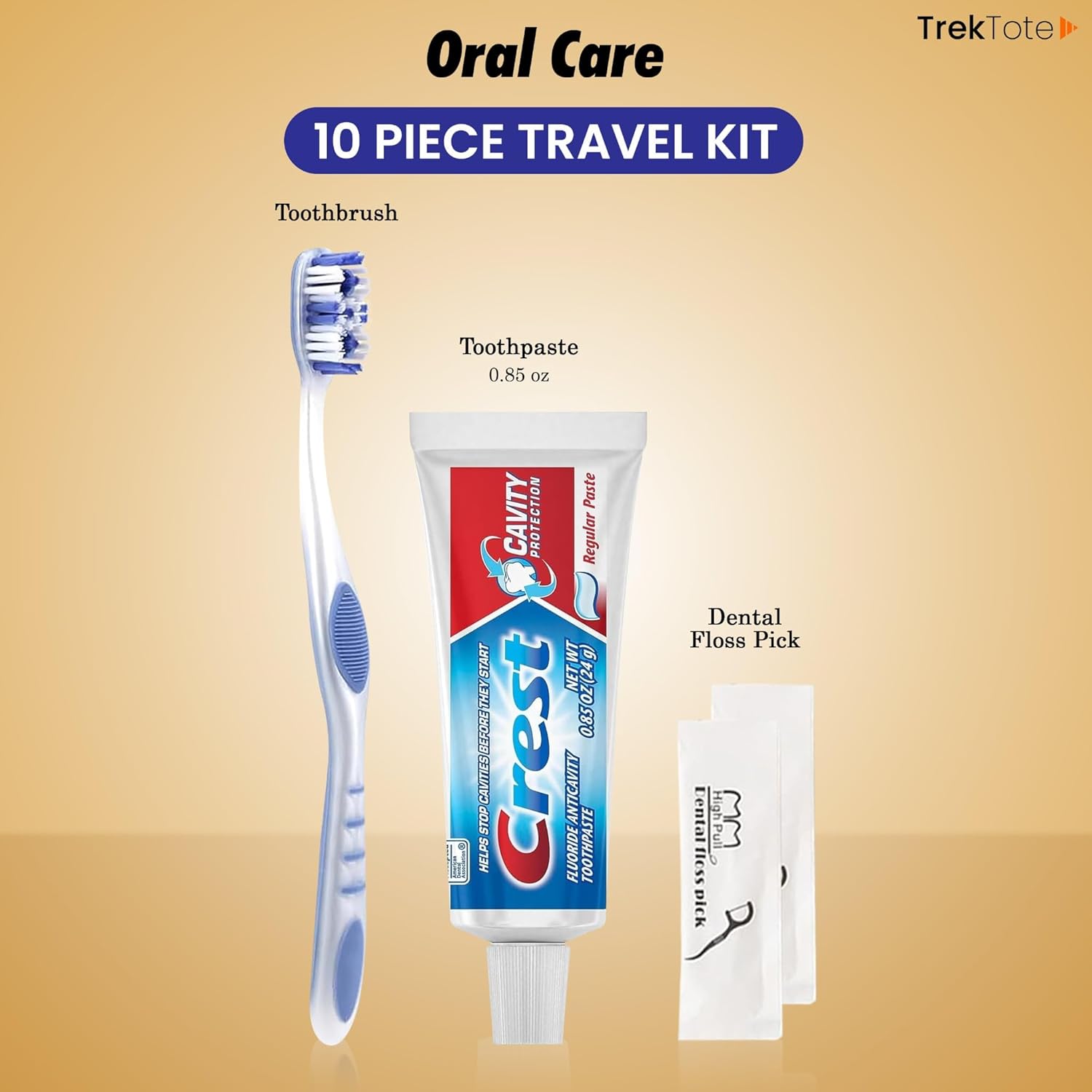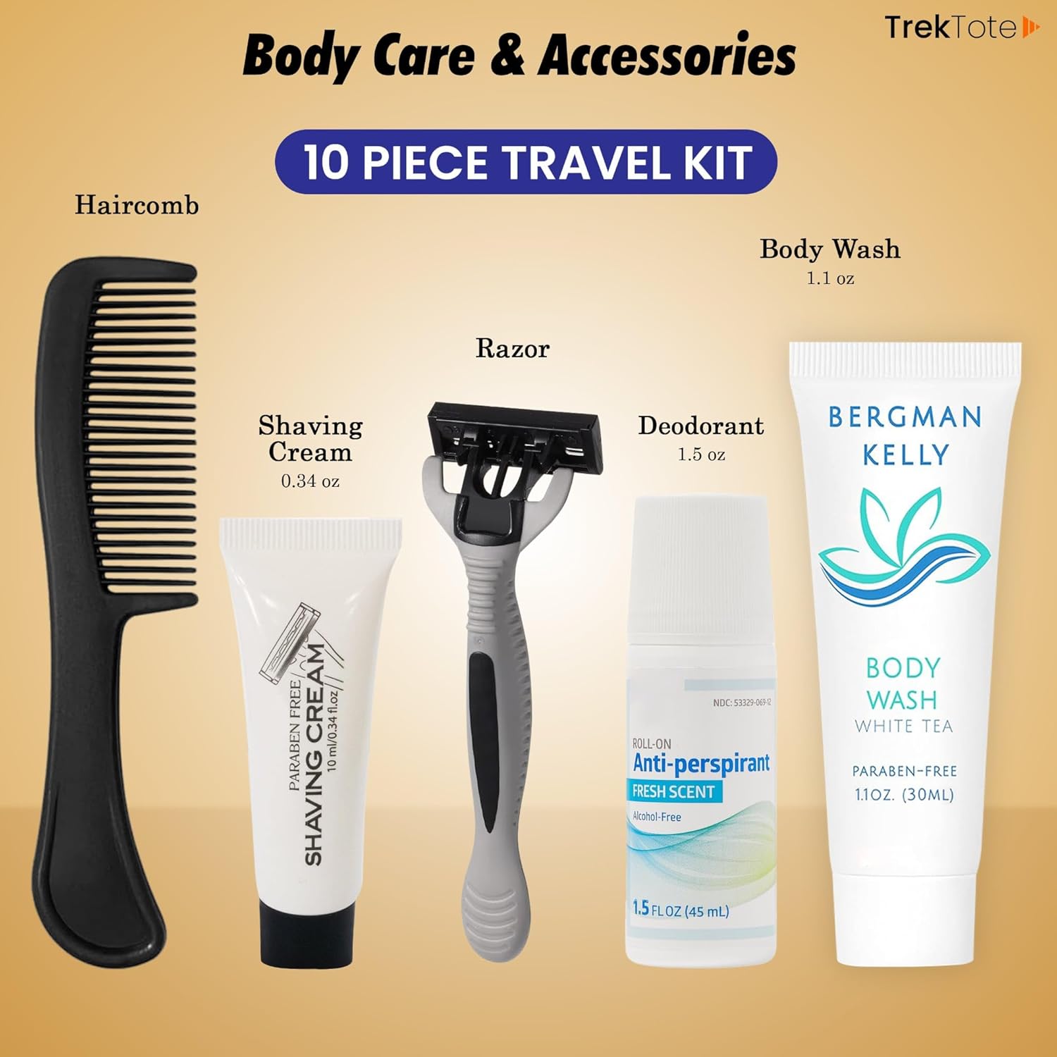 Trektote Travel Toiletry Kit For Men And Women – 10 Piece Set of Travel Size Toiletries, TSA Compliant, Includes Body Wash, Deodorant, Shaving Cream And Razor, Oral Care, Reusable Toiletry Bag & More