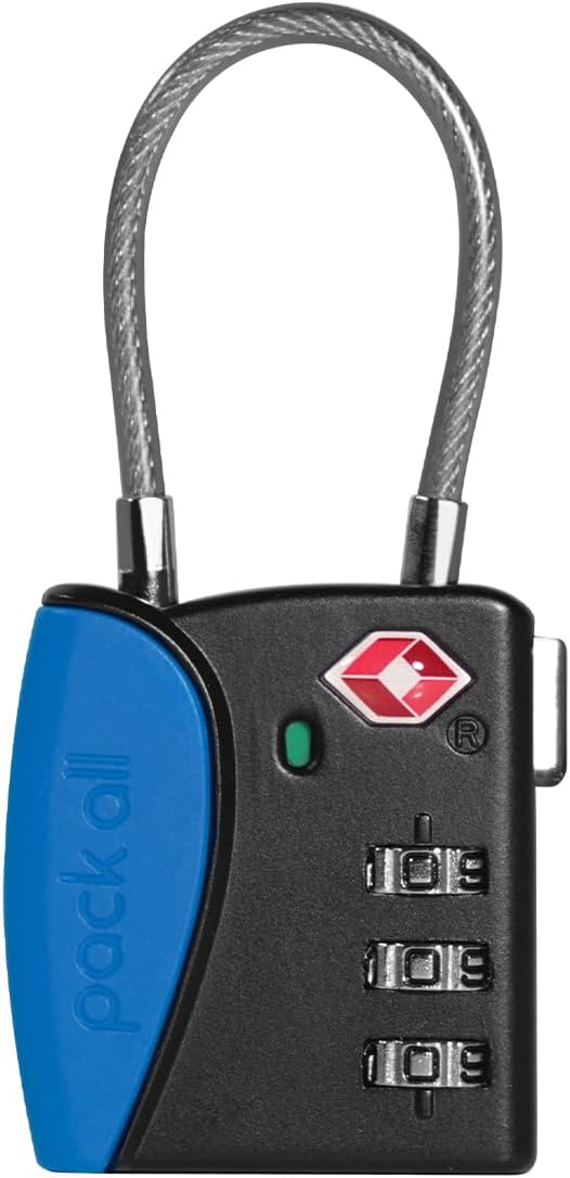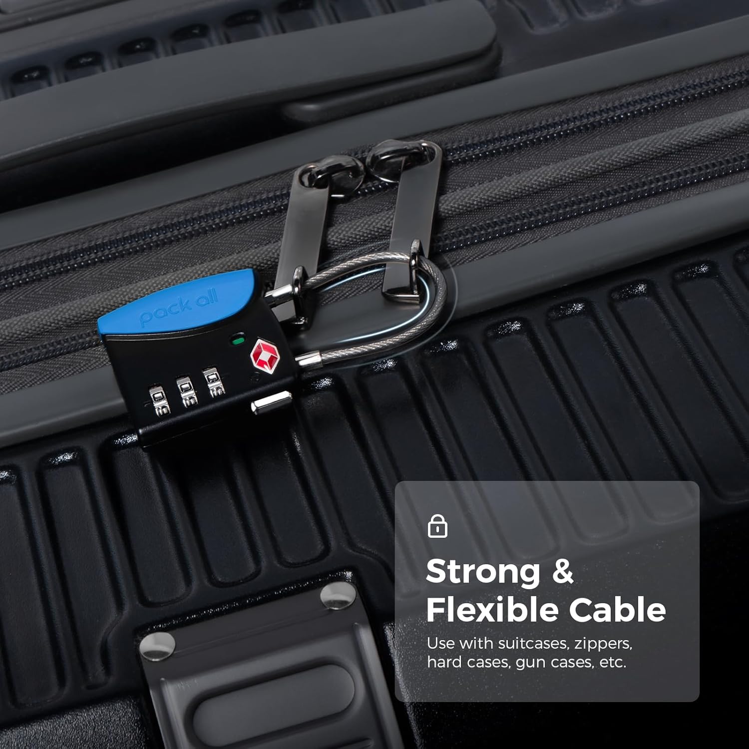 pack all TSA Approved Cable Luggage Locks, 3 Digit Combination Padlocks, Travel Lock for Suitcases & Bag, Alloy Body, Travel Accessories (1 Pack)(Navy)