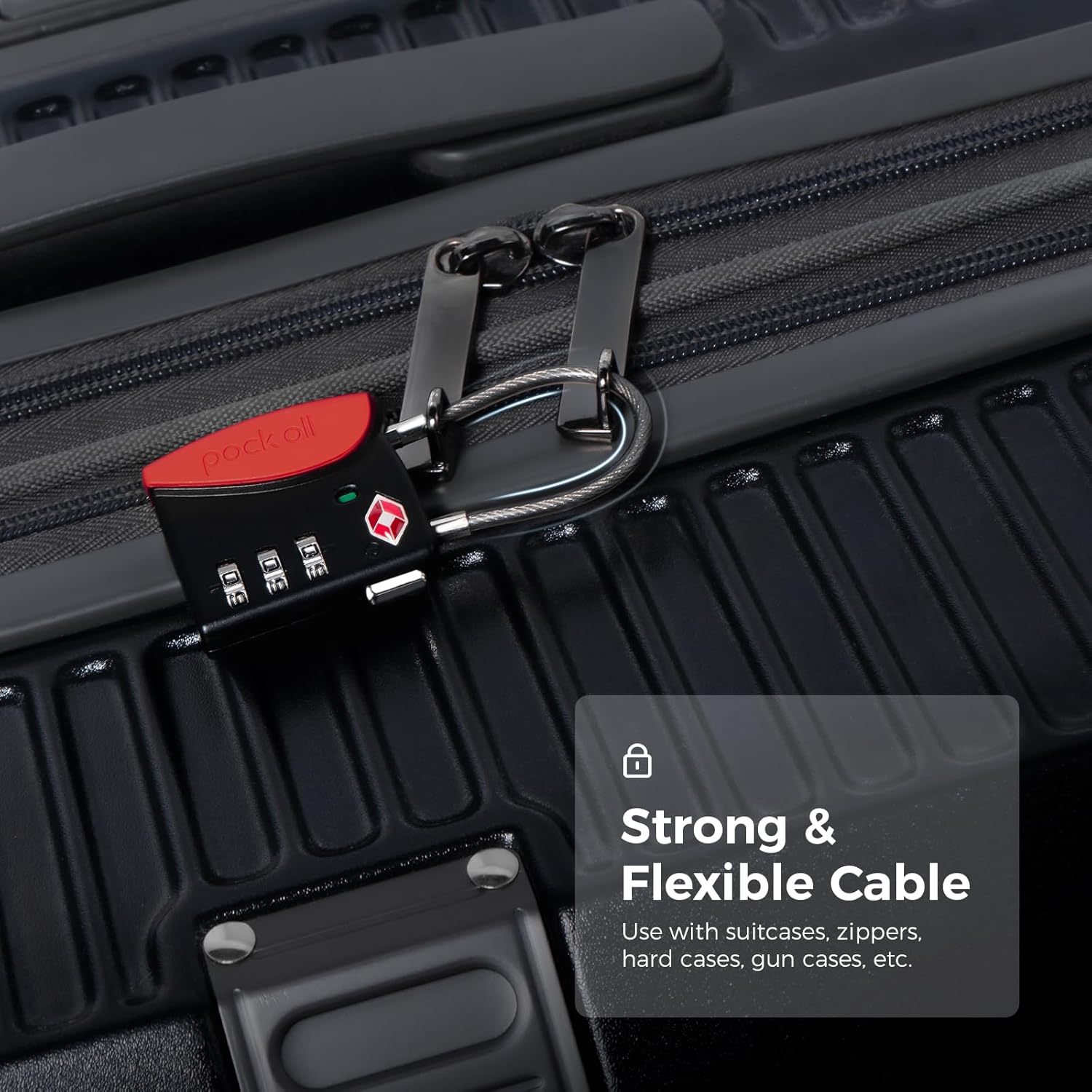 pack all TSA Approved Cable Luggage Locks, 3 Digit Combination Padlocks, Travel Lock for Suitcases & Bag, Alloy Body, Travel Accessories (4 Pack)(Red)