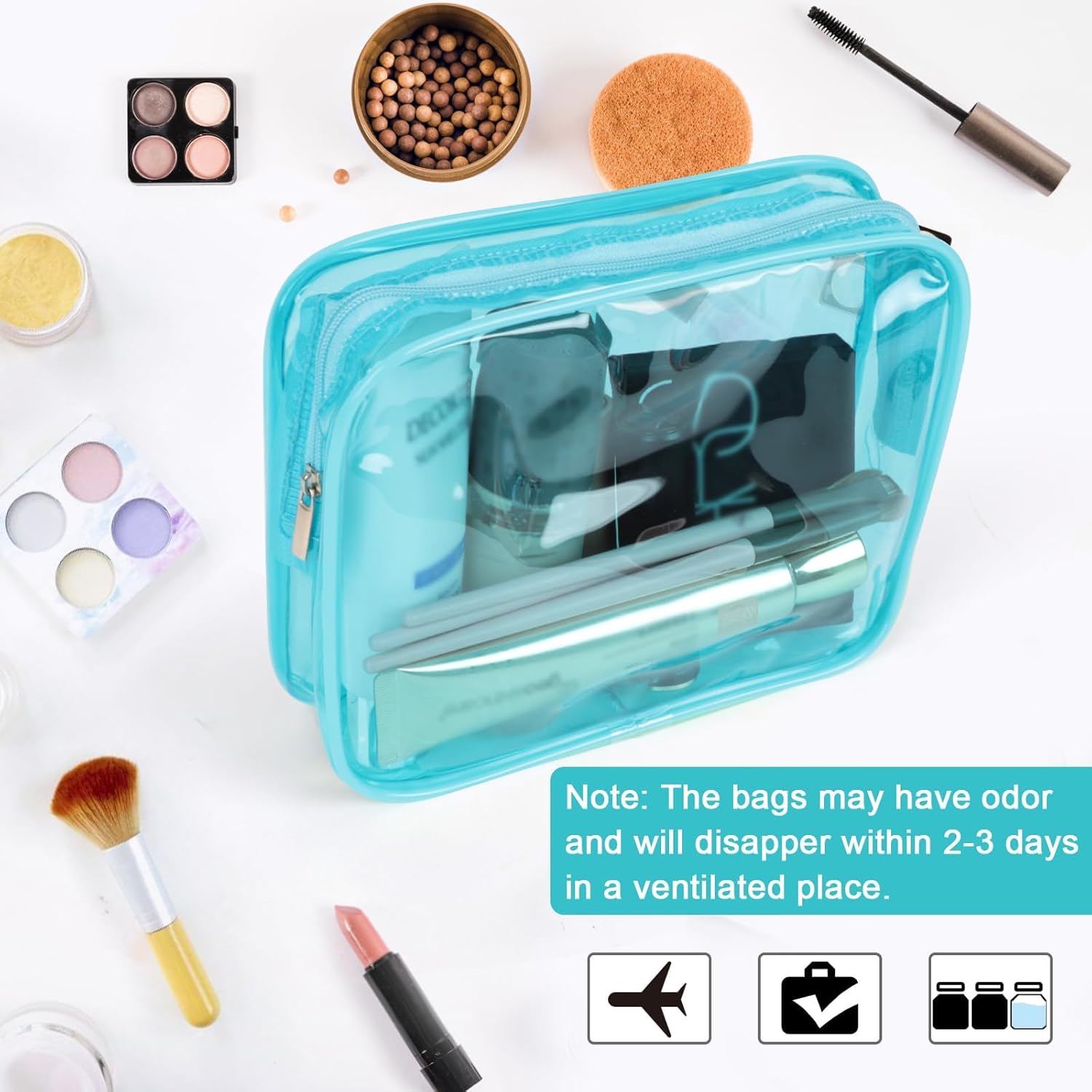 APREUTY Clear Makeup Bags, TSA Approved 6 Pcs Cosmetic Makeup Bags Set Clear PVC with Zipper Handle Portable Travel Luggage Pouch Airport Airline Vacation Organization(Light Blue)