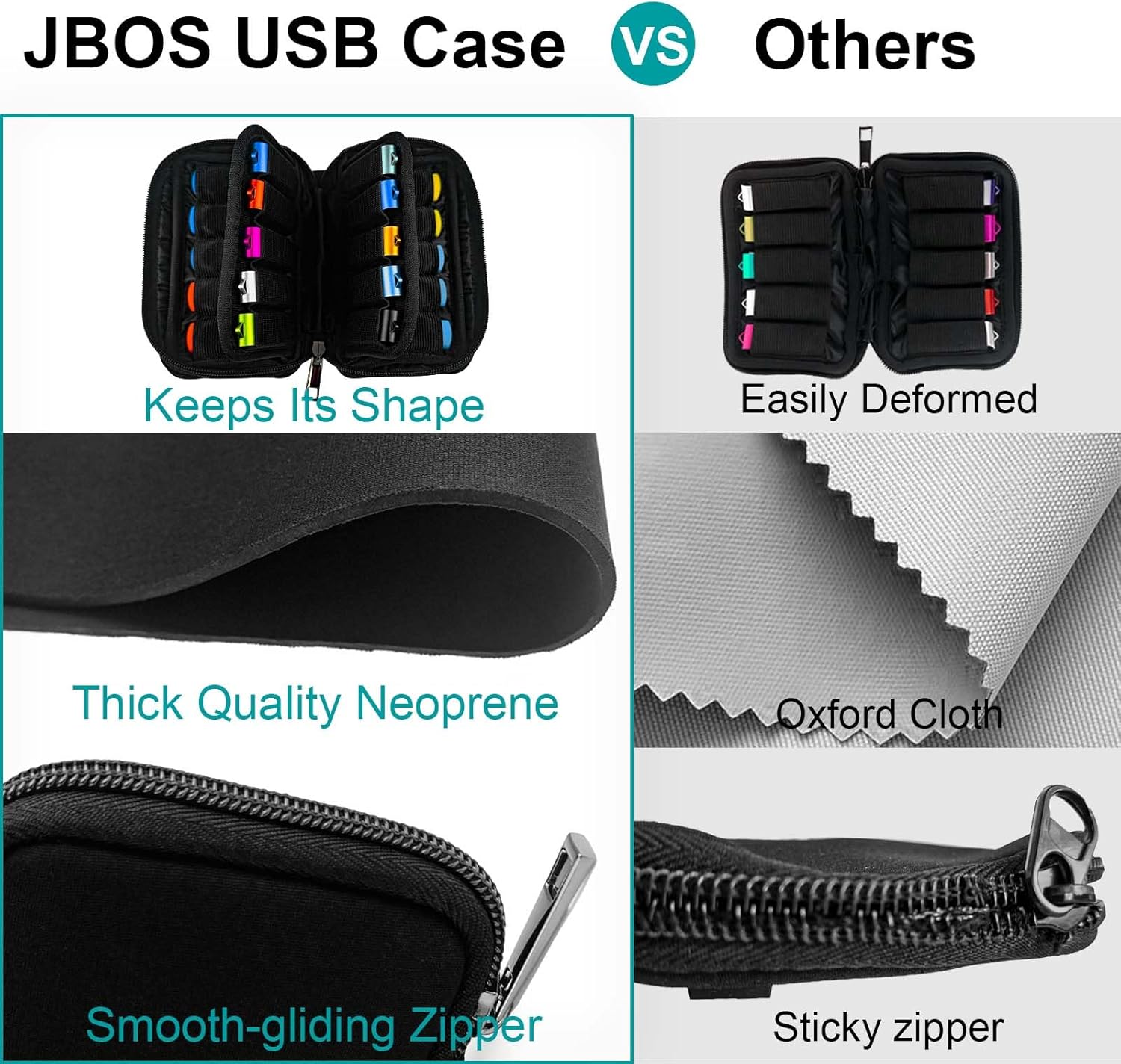 - USB flash drive storage case got the nice and sturdy zipper, seams are snug and secure. The thumb drive case can hold your pen drives without any worry.