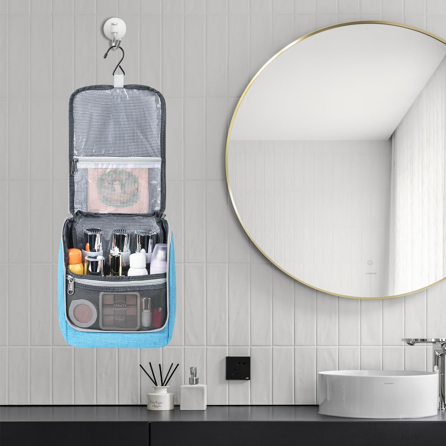 Della Gao Hanging Toiletry Bag for Men & Women, Portable Travel Cosmetic Makeup Bag Toiletries Organizer Kit, Water Resistant Bathroom Bag, Blue