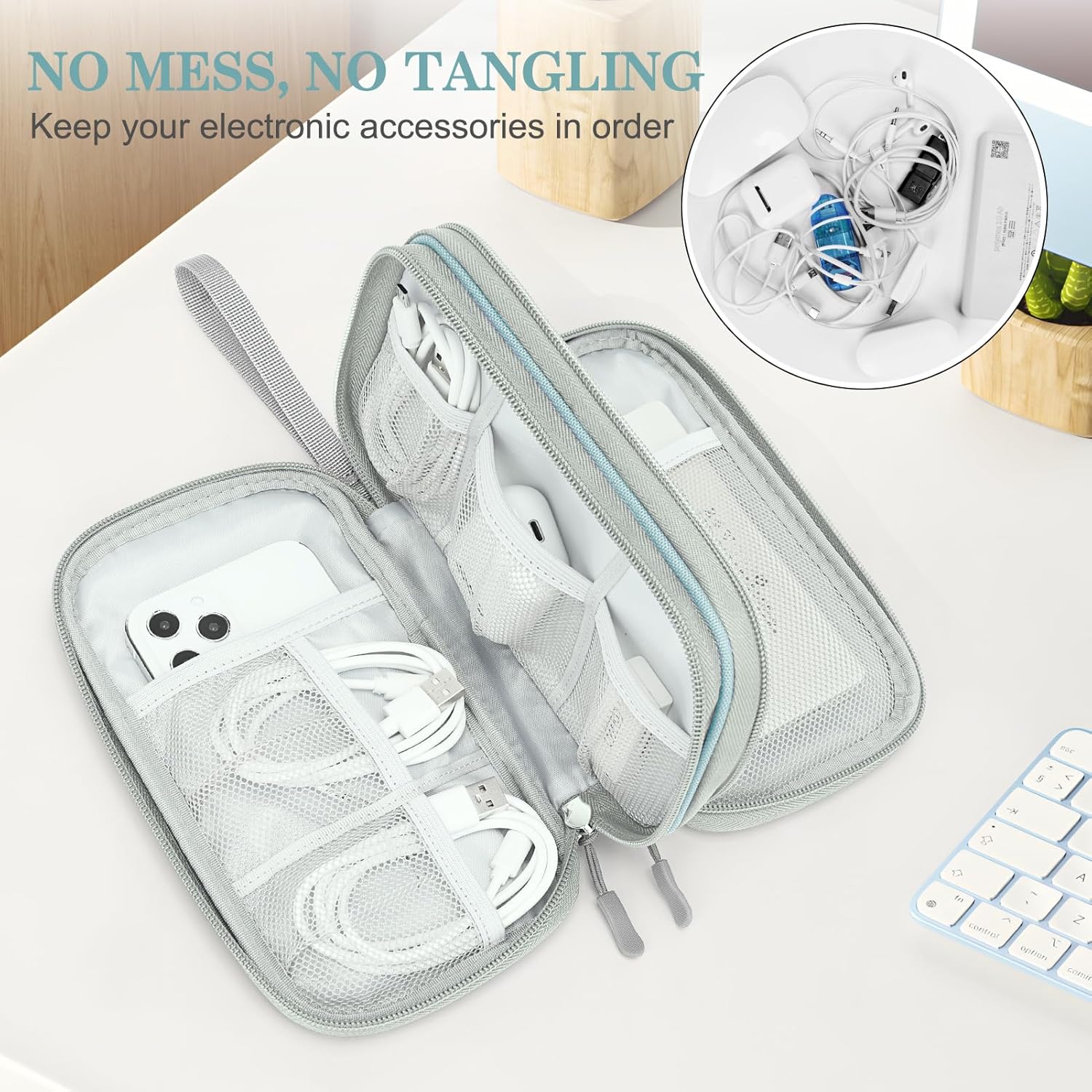 - Double Layers Design: The electronics storage bag has 2 layers interior compartment with enough space to take in your cords, cables, USB drive, cellphone, charger, mouse, flash drive, and other accessories.
