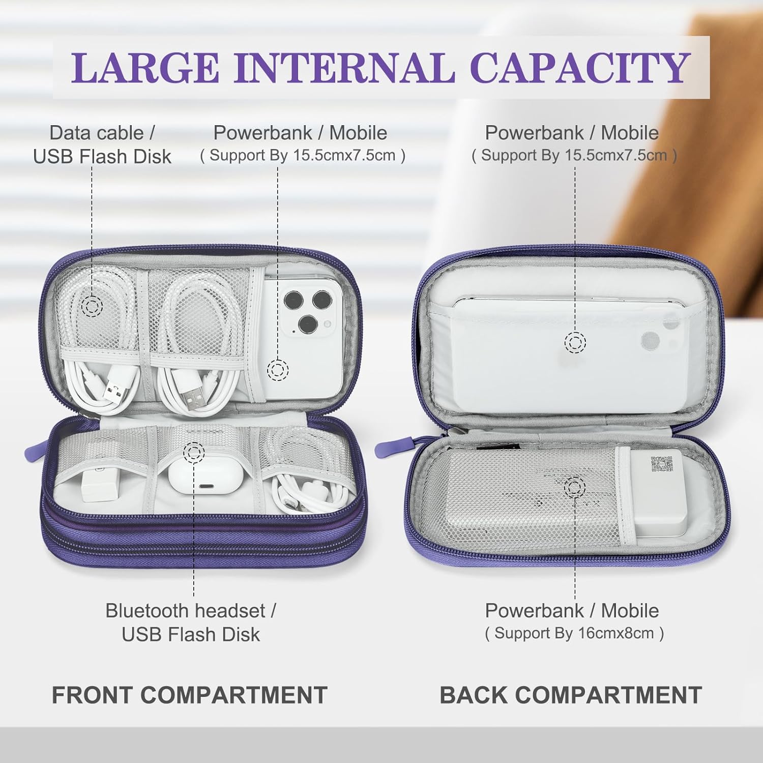 - Double Layers Design: The electronics storage bag has 2 layers interior compartment with enough space to take in your cords, cables, USB drive, cellphone, charger, mouse, flash drive, and other accessories.
